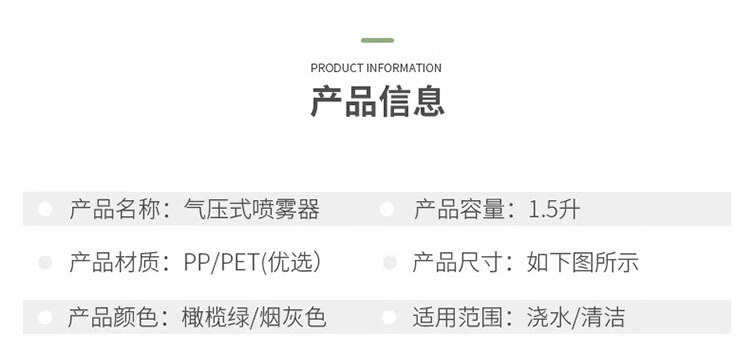 海斯迪克 气压式喷壶 KQ71-2 1.5L烟灰色01 1个