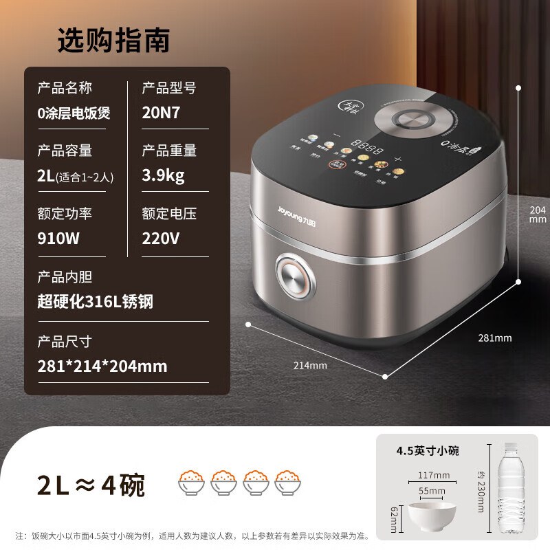 九阳 0涂层电饭煲 20N7 2L 910W 1个