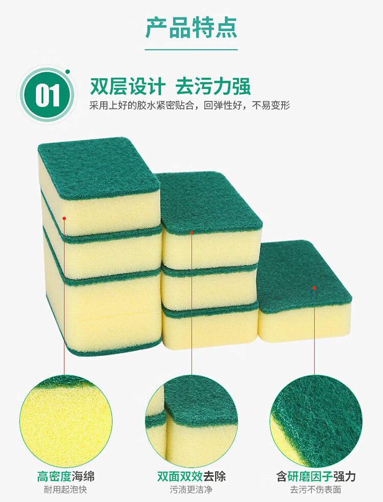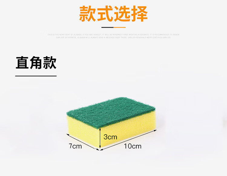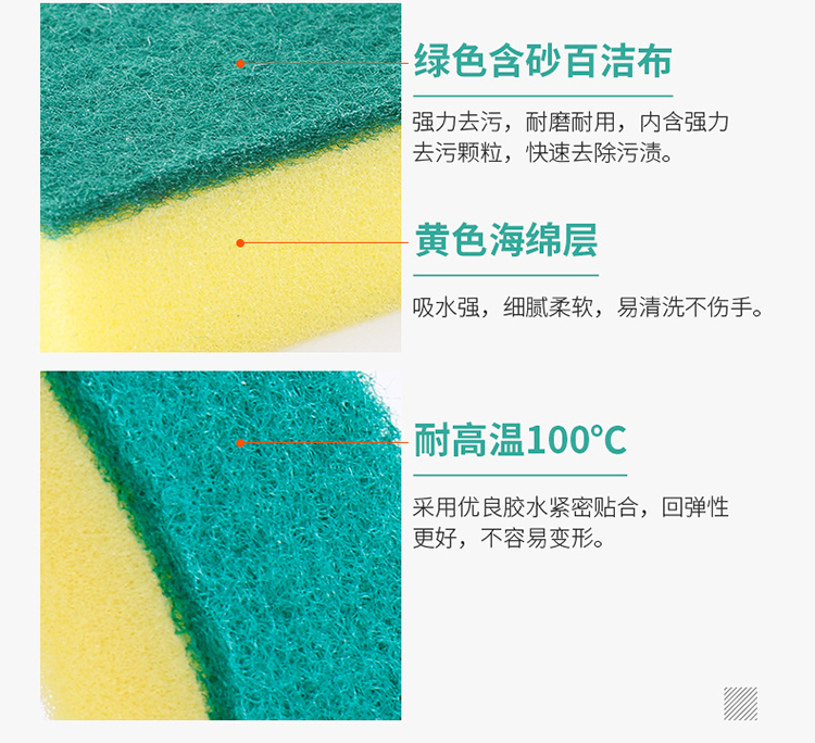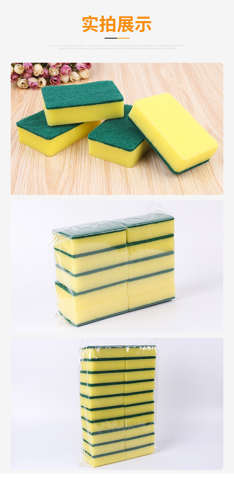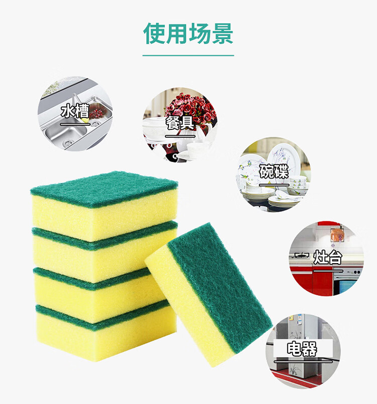 海斯迪克 洗碗海绵擦 KQ86-1 10*7*3cm 黄绿色 5个 1件