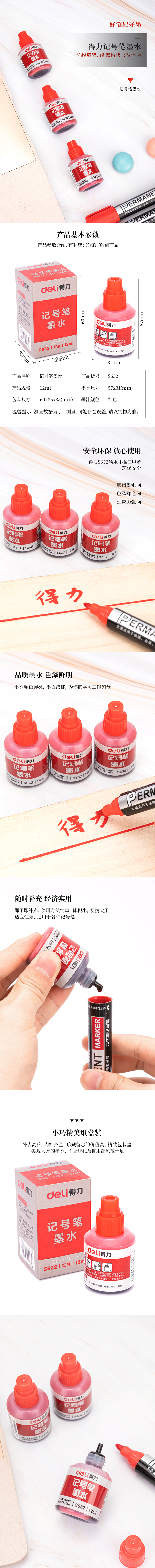 得力 记号笔墨水 S632 红色 12ml 1瓶