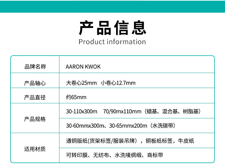 AARONKWOK 增强型蜡基碳带 110mm*300m 1卷
