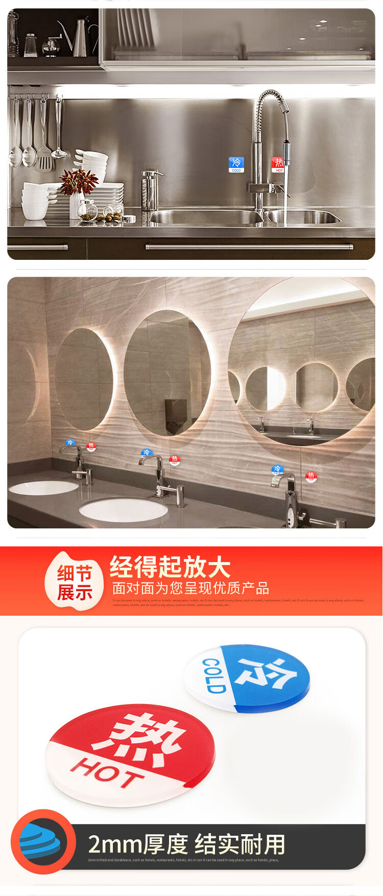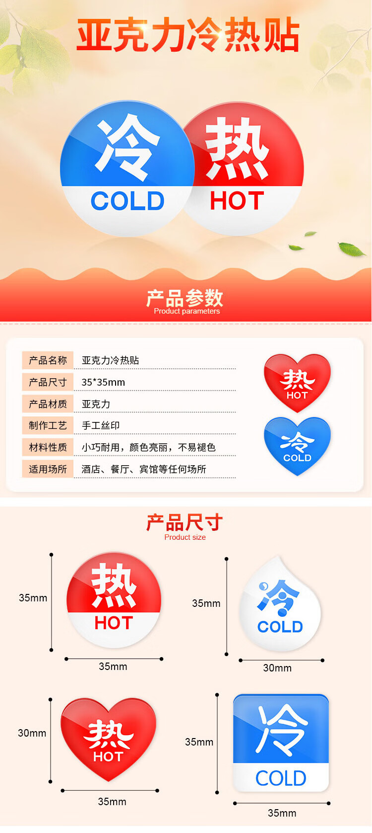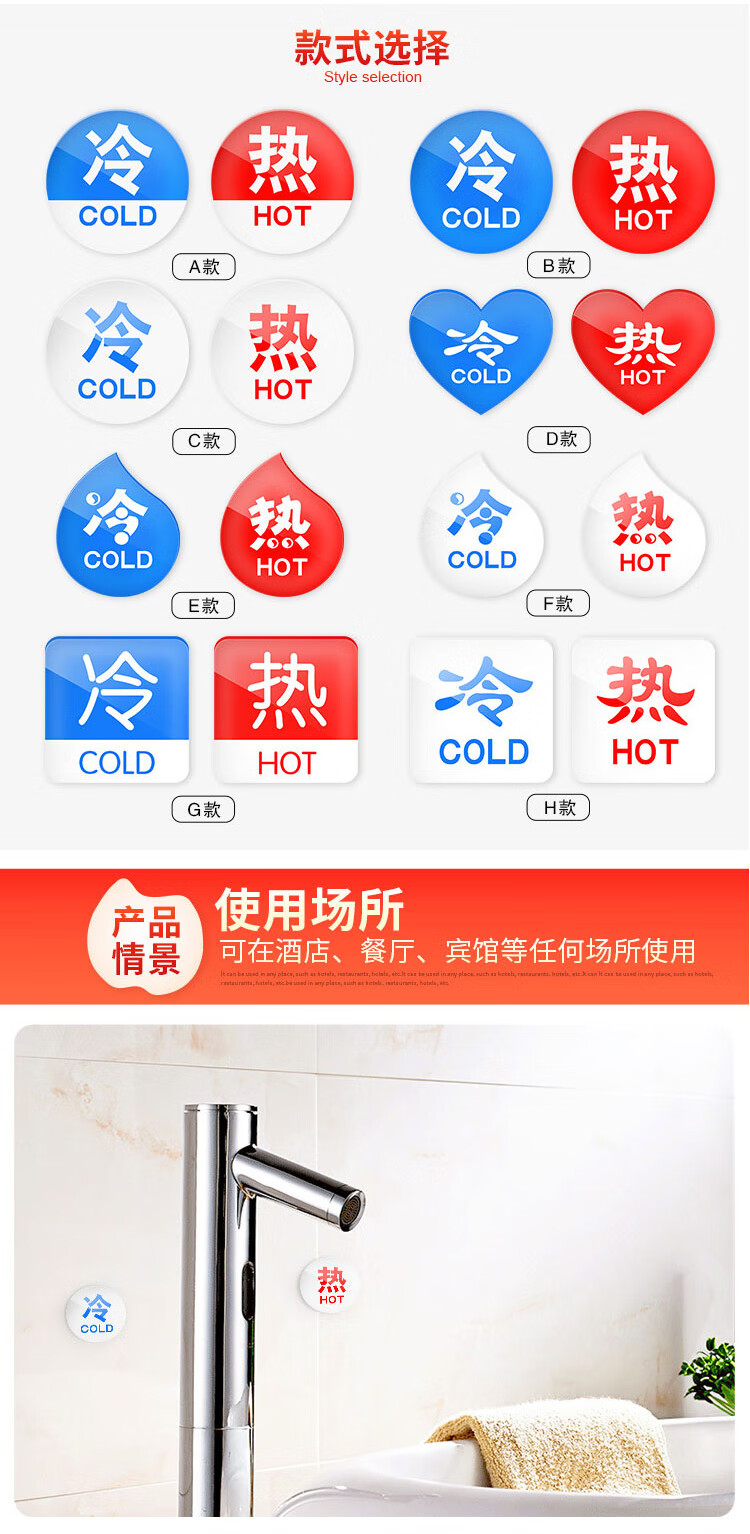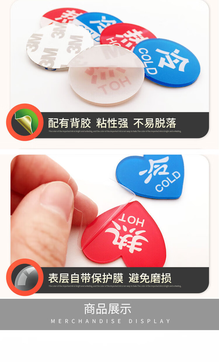 海斯迪克 I款 冷热水标识贴 KS93-9 亚克力 3.5*3.5cm厚2mm 1对