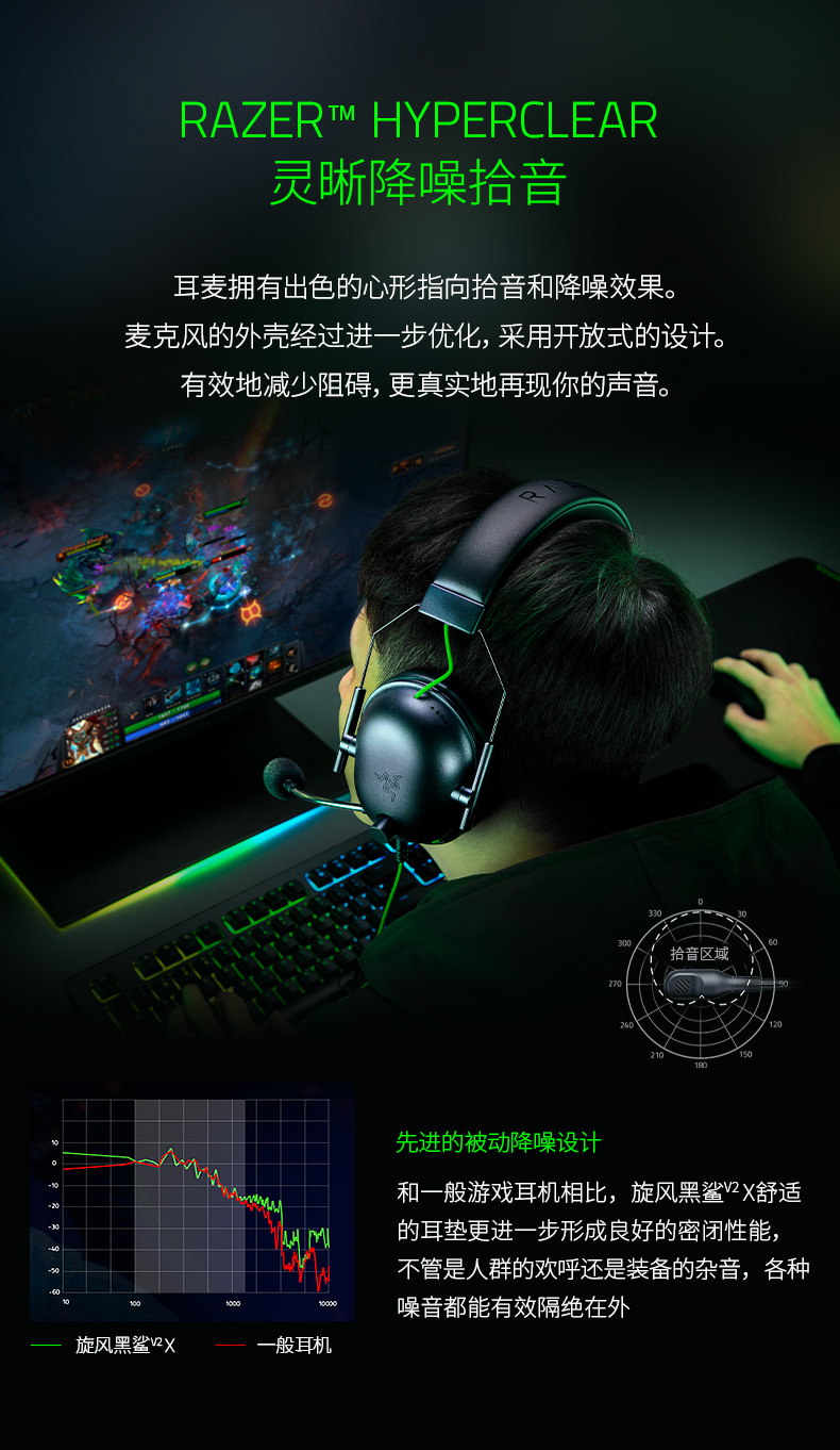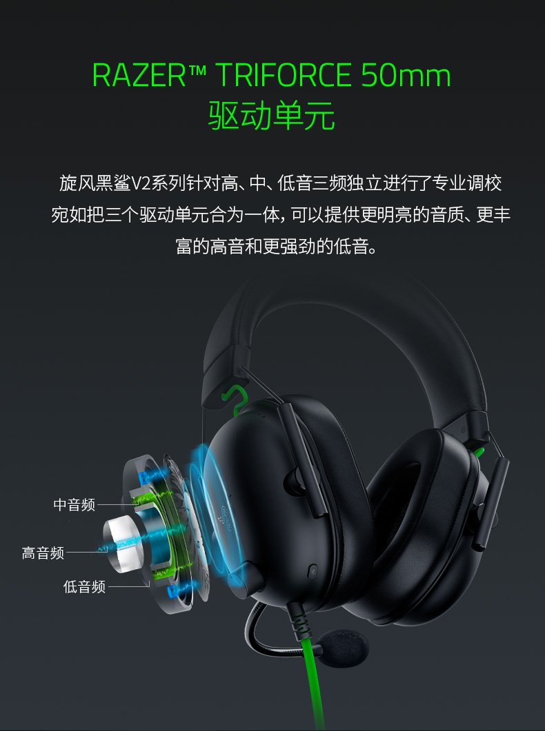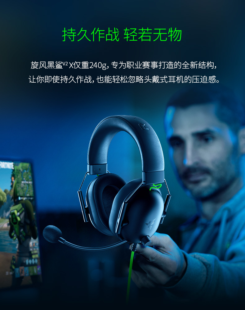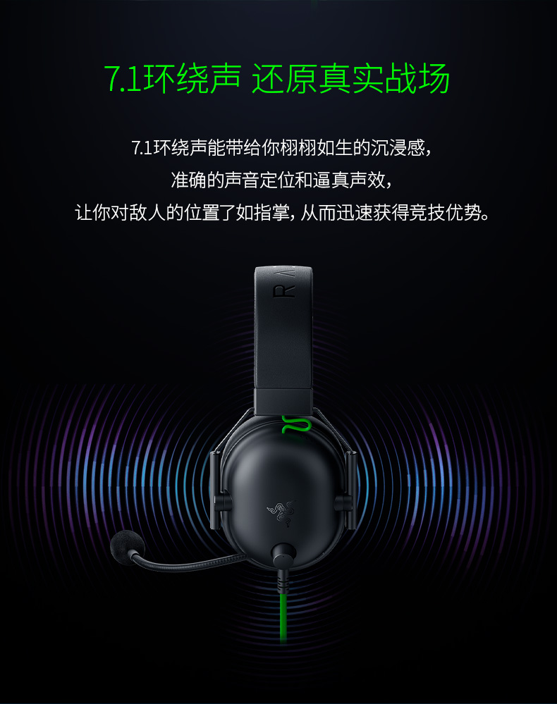 雷蛇 有线头戴式耳机 黑鲨 V2 黑色 1个