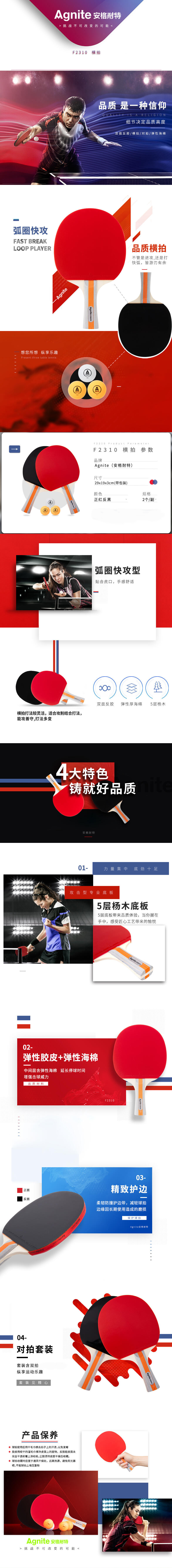 得力 安格耐特乒乓球拍 F2310 正红反黑 2个 1副