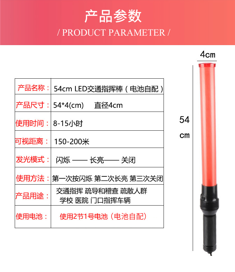 海斯迪克 交通指挥棒 KA27-5 PC+ABS 红橙(电池自配) 54cm 1个