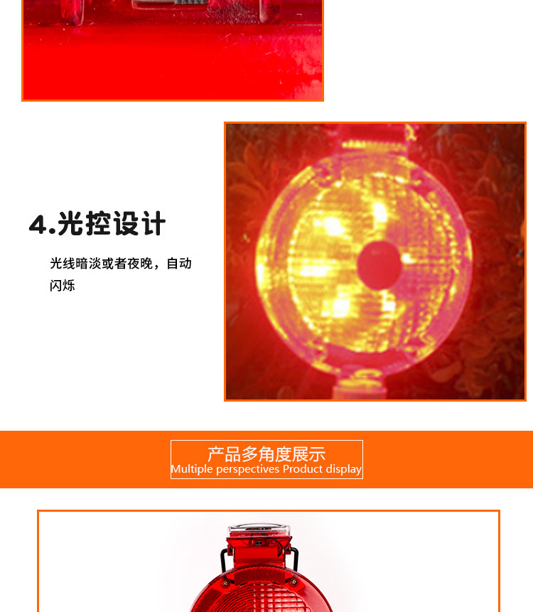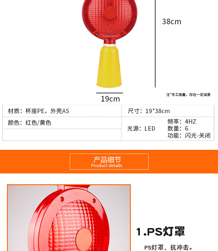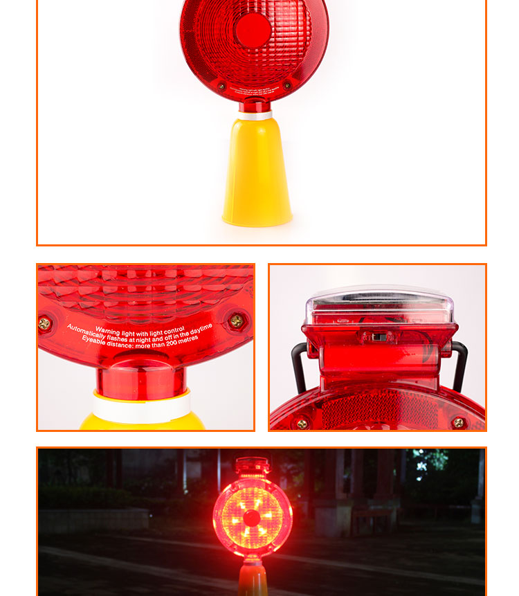 海斯迪克 太阳能路锥灯 KA29-1 PE+AS 光控红光 19*38cm 1个