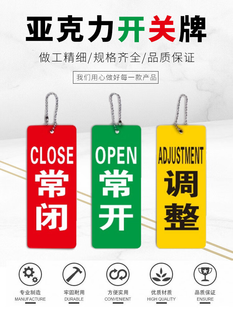 海斯迪克 常开 阀门开关标识牌 KS110-5 亚克力 6.5*4cm厚2mm 1个
