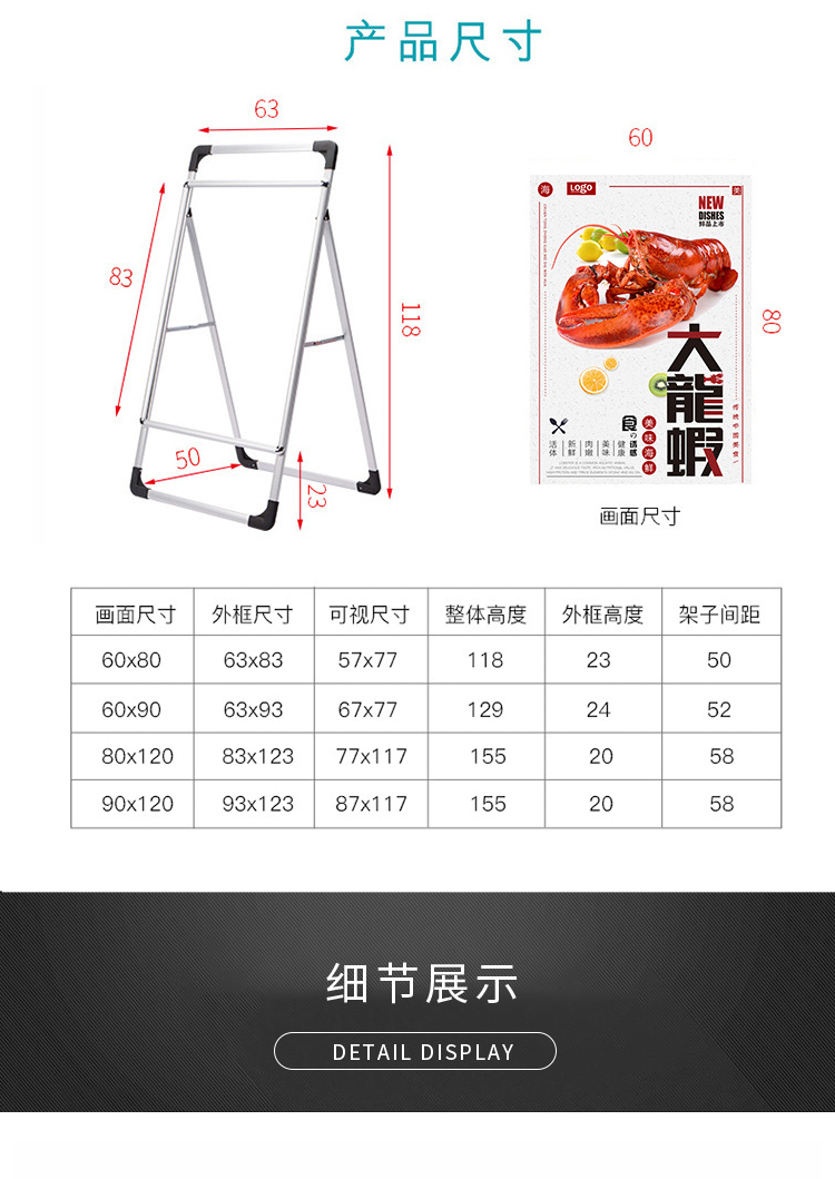 海斯迪克 A型可折叠广告架 KS114-2 单面铝合金 90*120cm 1个