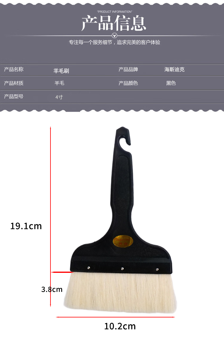 海斯迪克 A级羊毛刷 KQ103-1 4寸 黑色塑柄 10把 1件