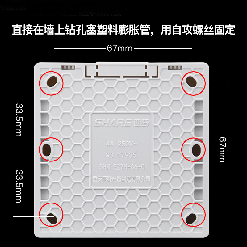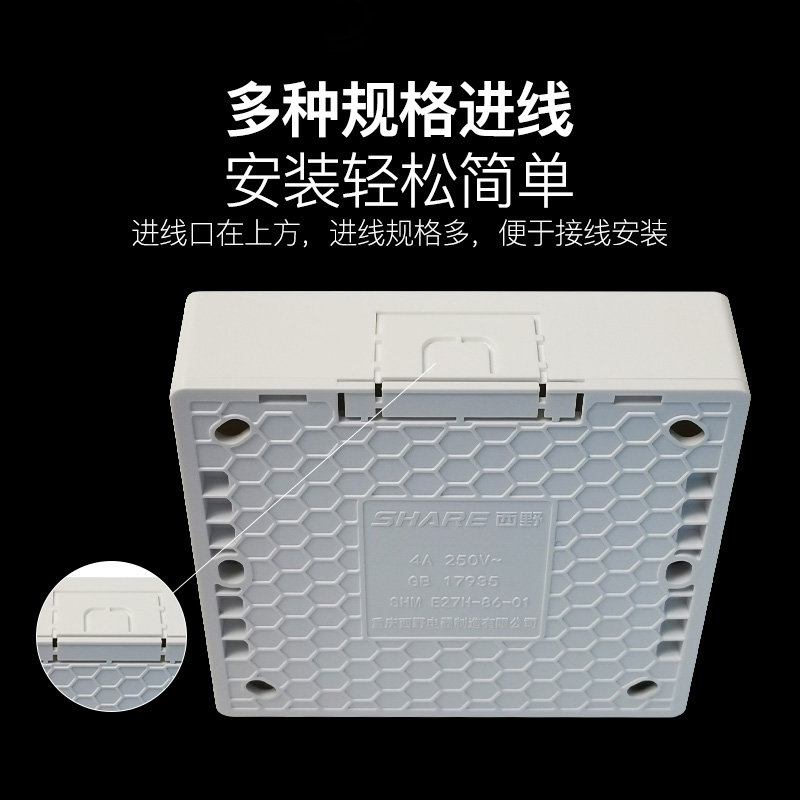 西野 86明装方灯座 SHM E27H-86-01 C款 易装型 1个