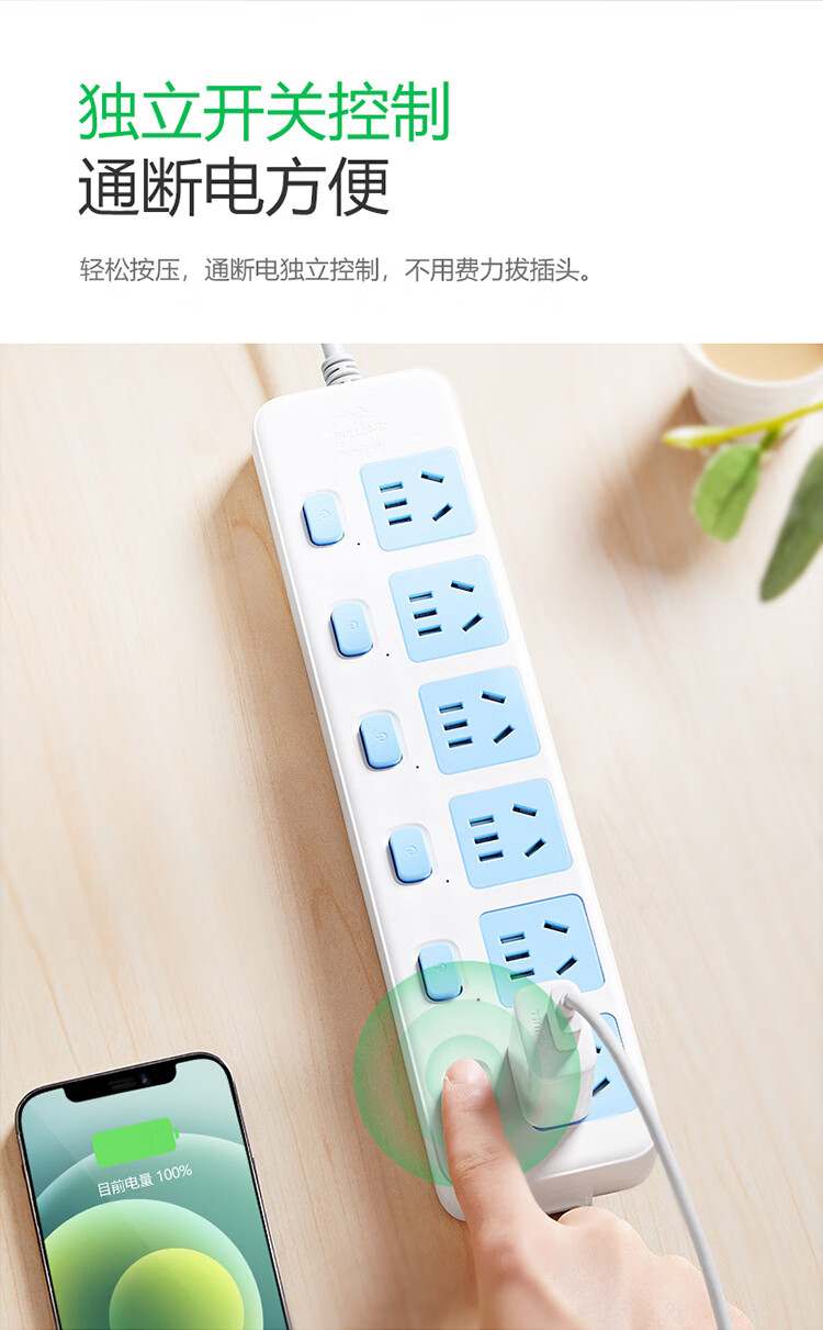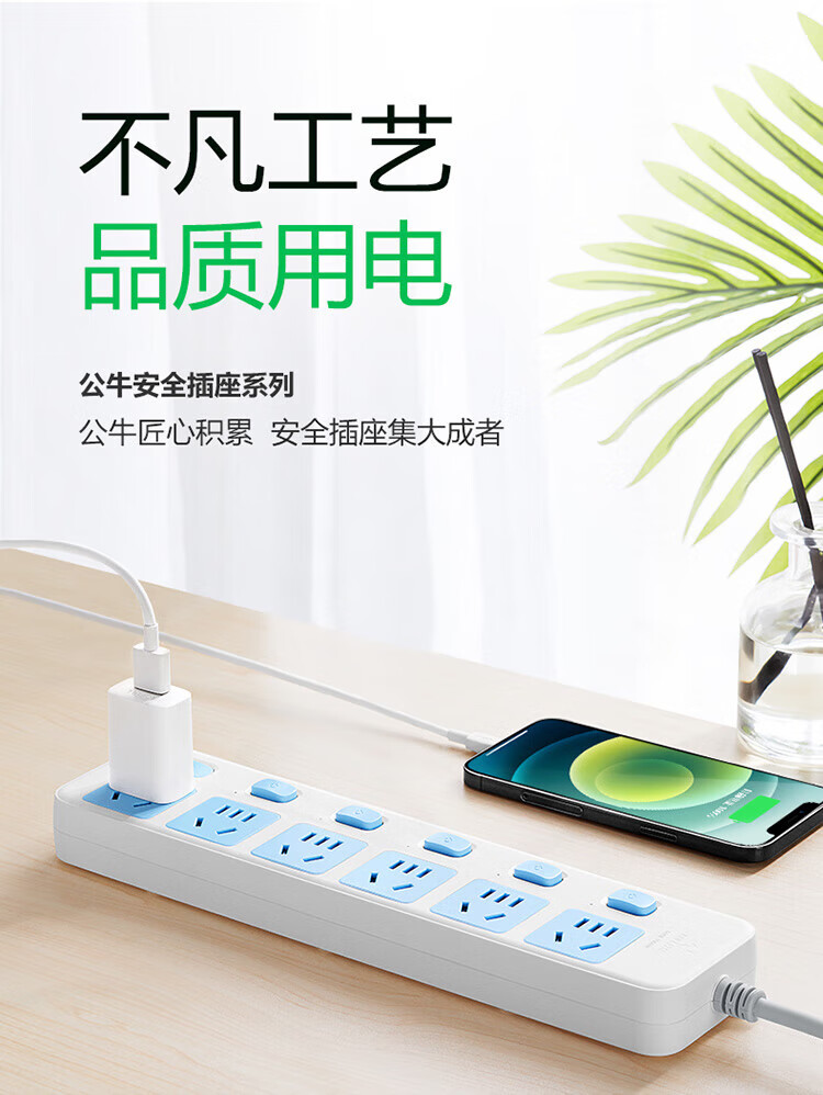公牛 独立开关插座 GN-317 6位分控 1.8M 1个