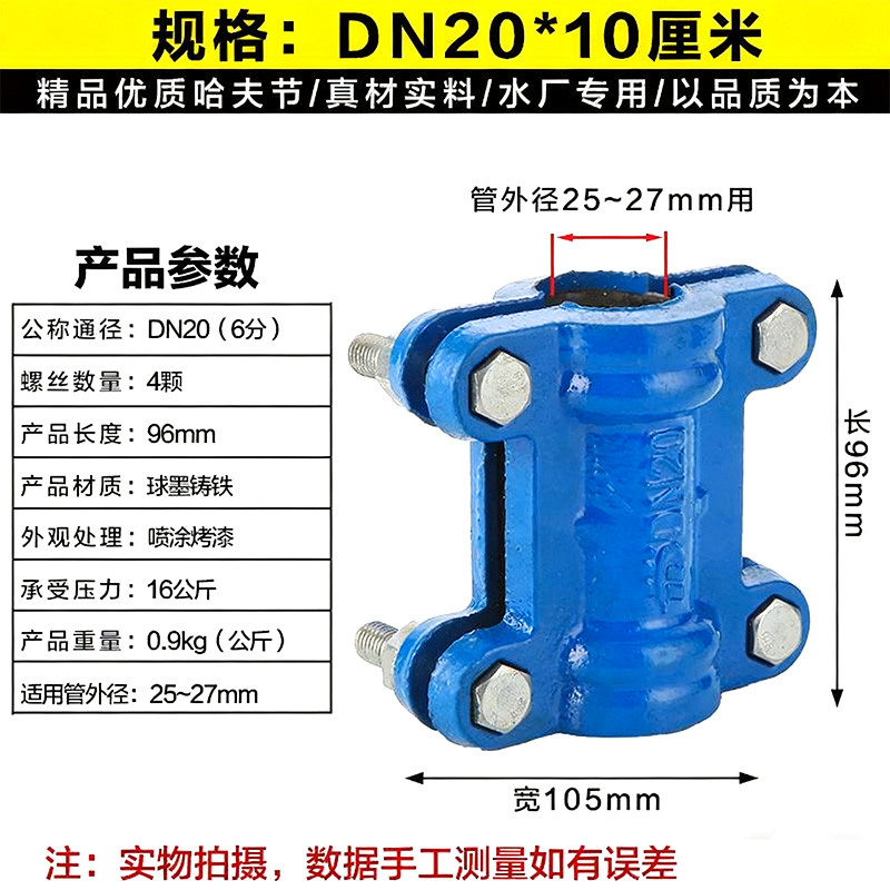 国产通用 哈夫节 DN25(1寸)*10cm 管外径32~34mm用 1个