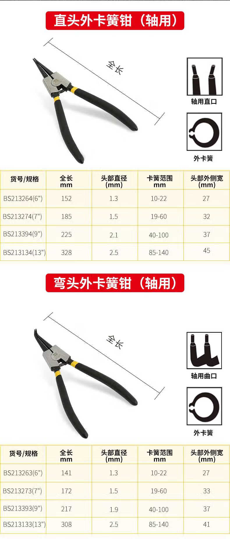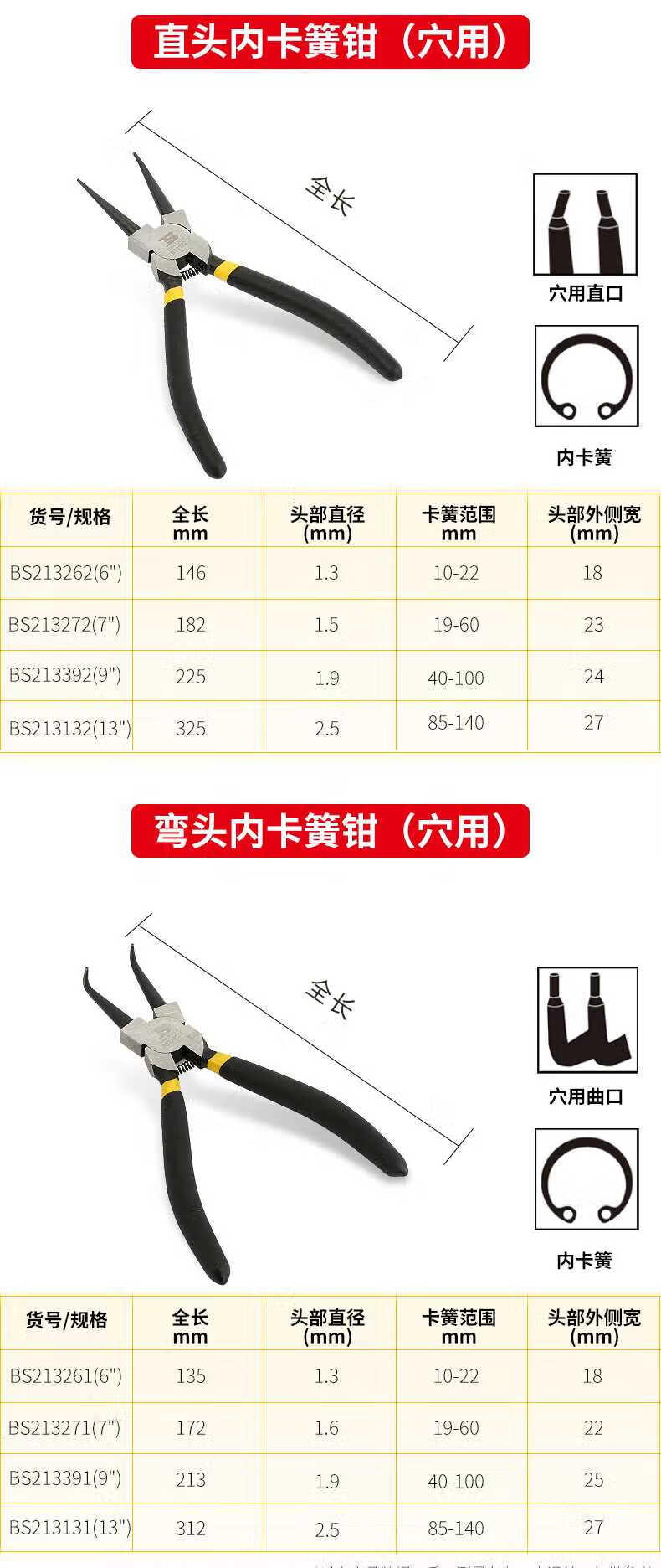 波斯 精品挡圈钳 BS213271 穴弯 7"/175mm 1个