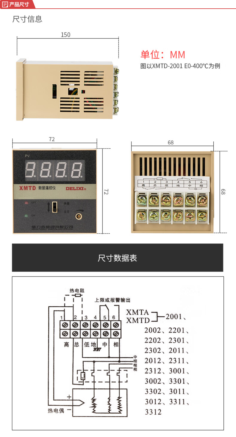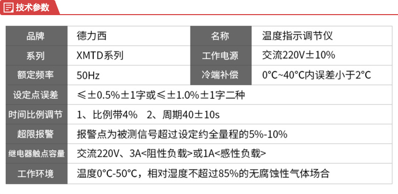 德力西电气 数显式温控仪 XMTD-2002 CU50 -50℃-150℃ AC220V 1个