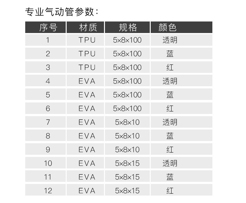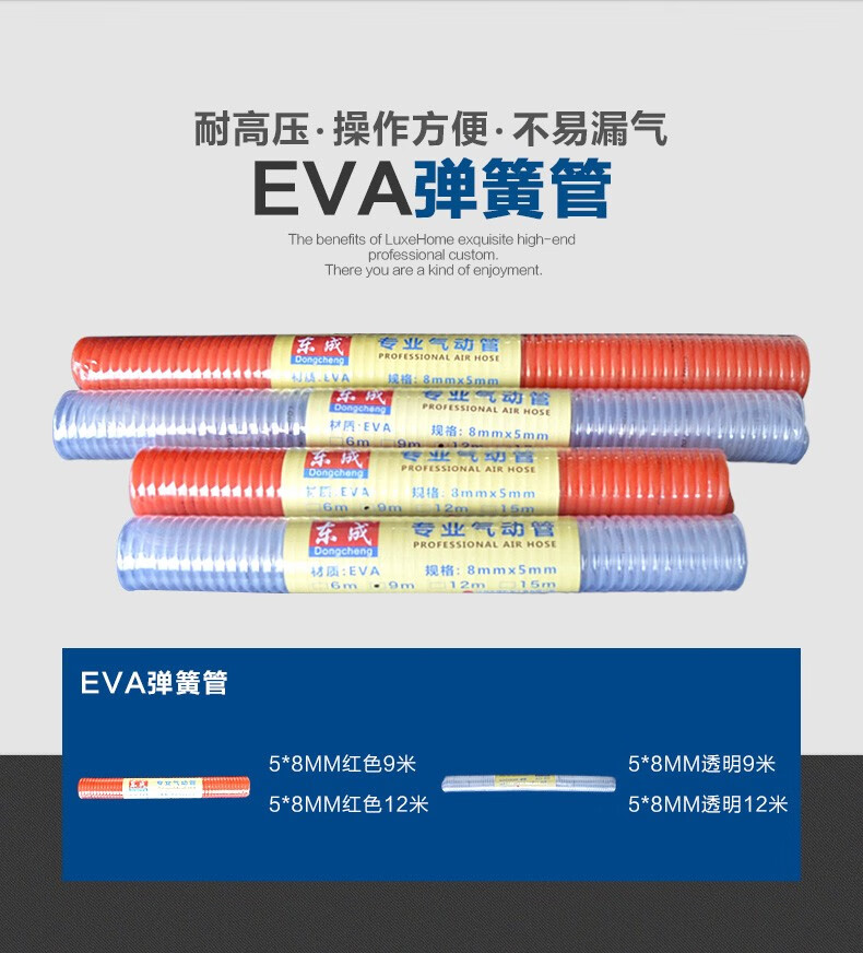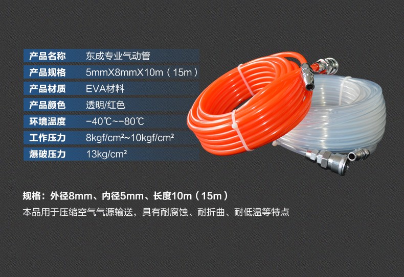 东成 专业EVA气管 5*8mm 透明 10米 1卷