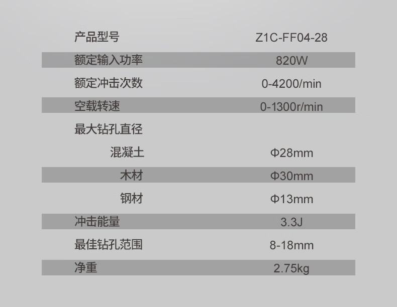 东成 充电式电锤 Z1C-FF04-28 220V 820W 额定冲击次数4200次/min 1把