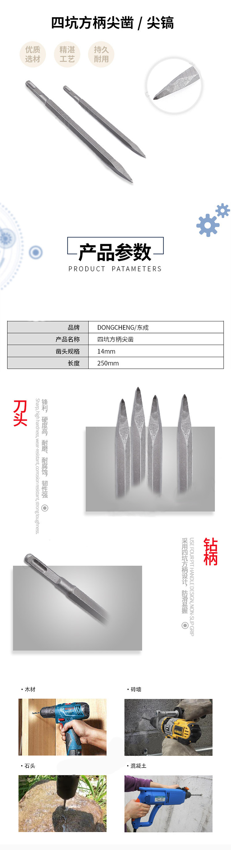 东成 四坑方柄尖凿 TY-FJ-GQ 14*250mm 1个