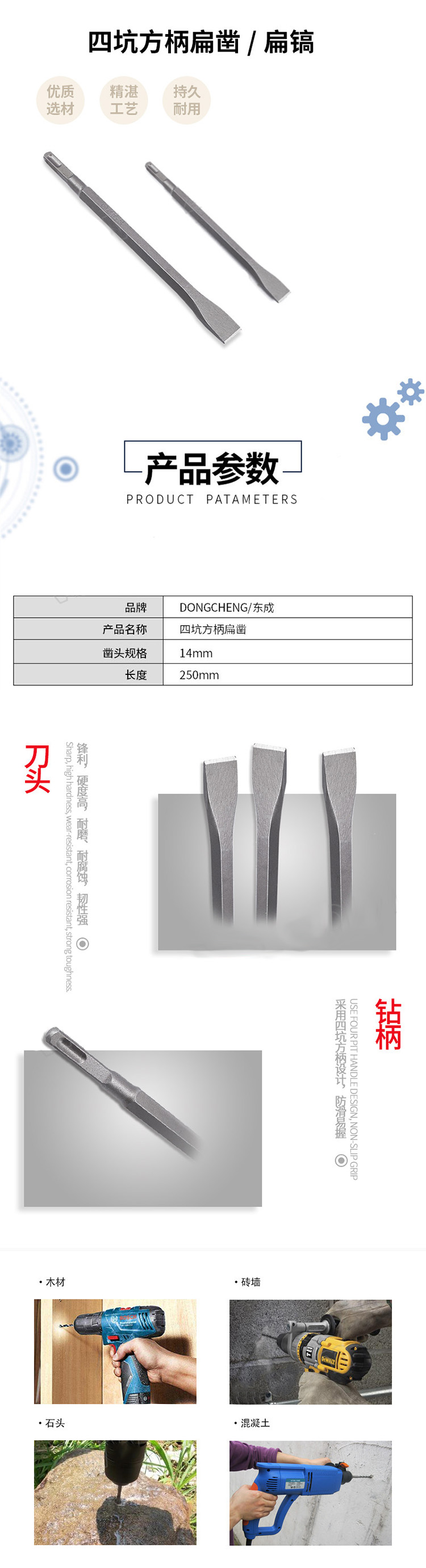 东成 四坑方柄扁凿 TY-FJ-GQ 14*250mm 1个