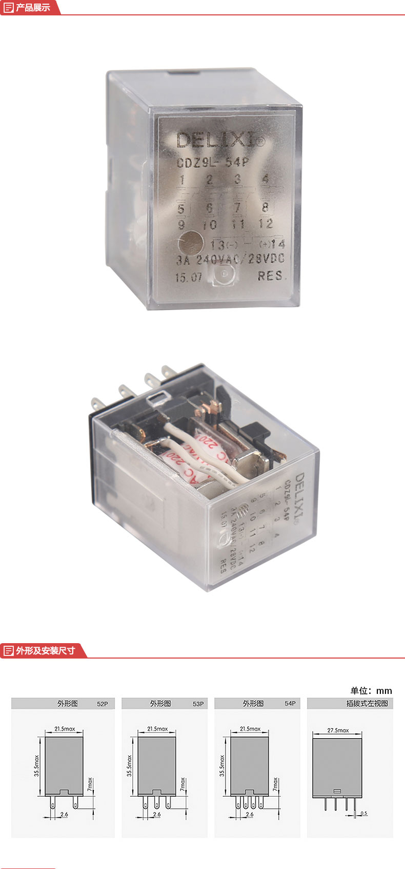 德力西电气 CDZ9系列小型电磁继电器 CDZ954AC220240V 54P(带灯)AC220-240V 1个