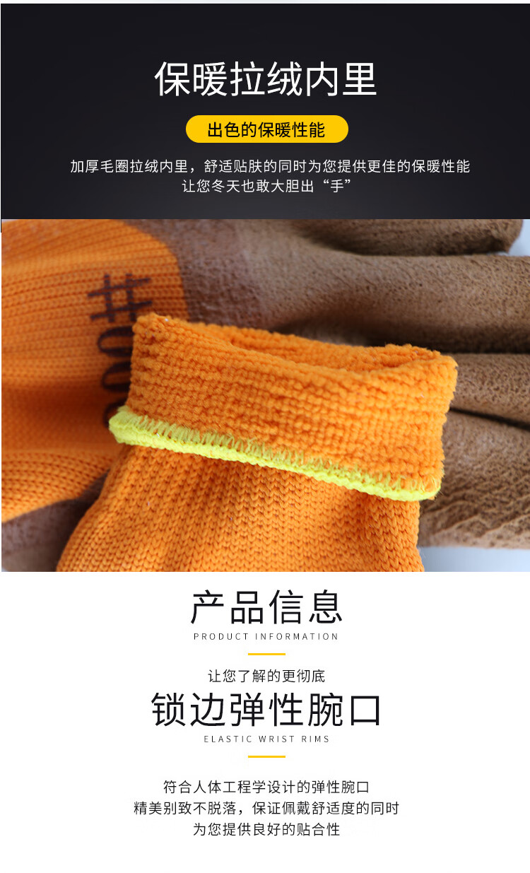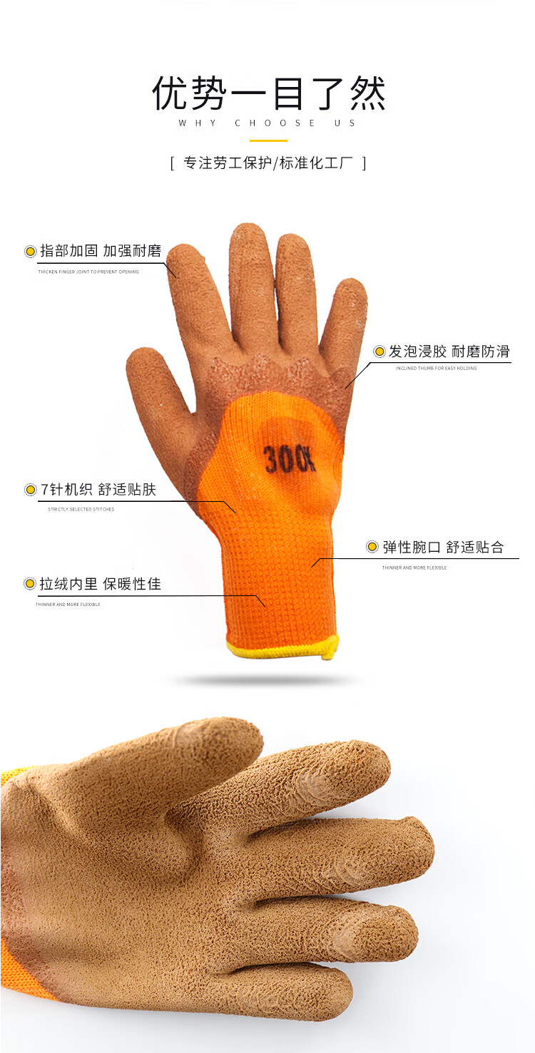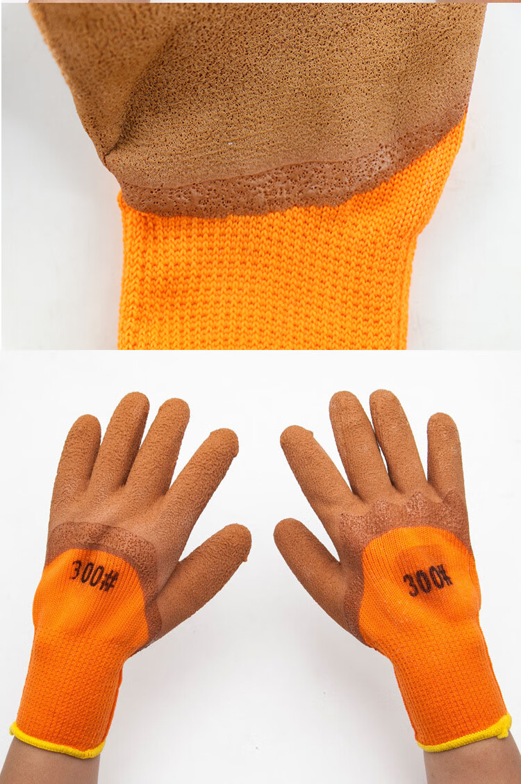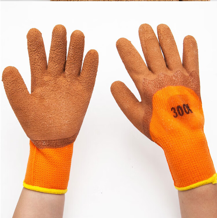 海斯迪克 加绒保暖发泡毛圈手套均码 KG70-2 橙色加强指 1双