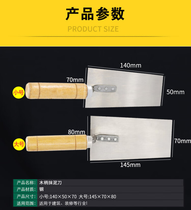 海斯迪克 木柄抹泥刀 KQ109-3 145*70*80mm 大号 1把