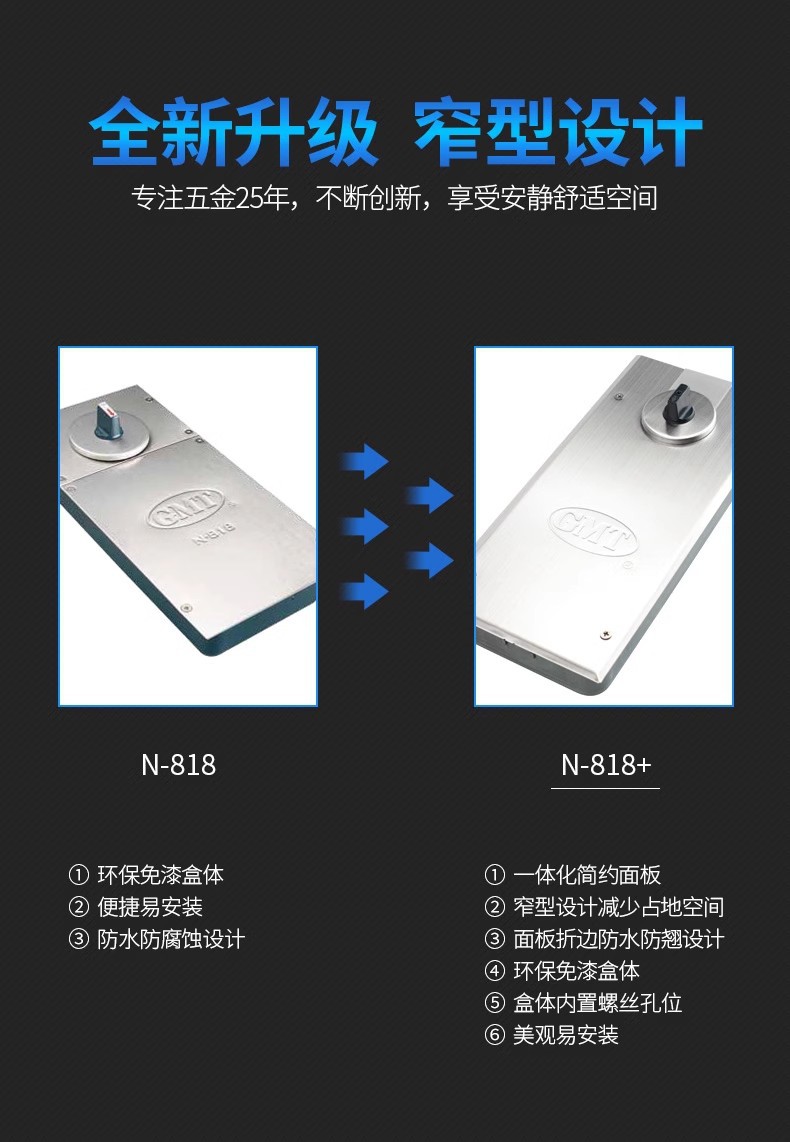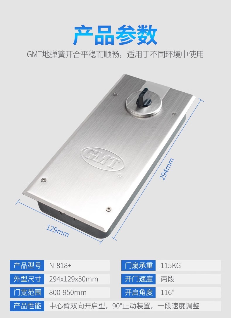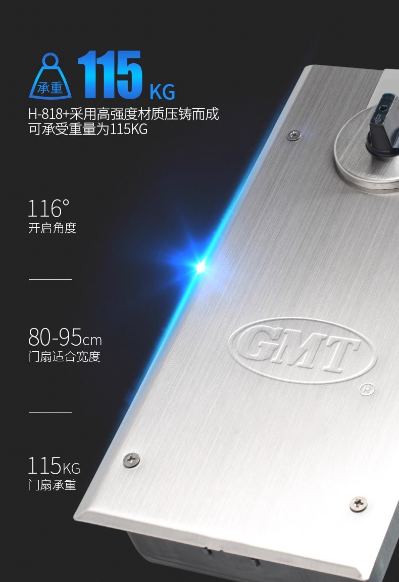 GMT 地弹簧 818Y 最大门重115kg 门宽800-950mm 最大开启角度116° 不定位 1台