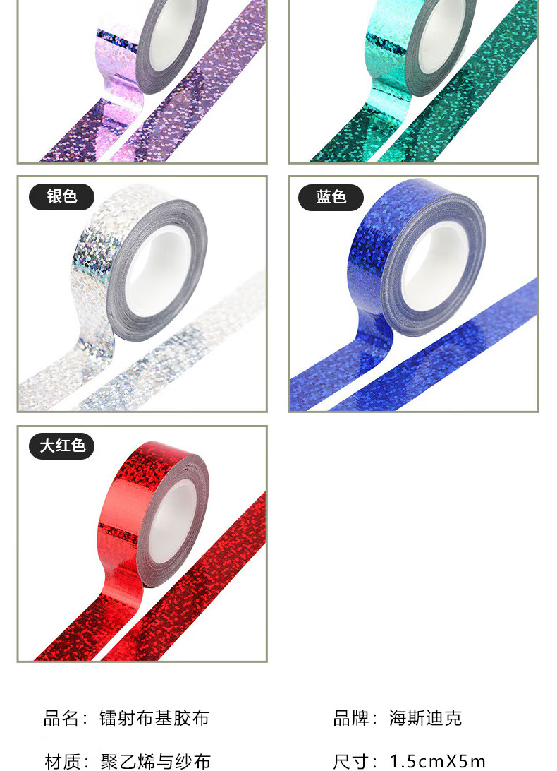 海斯迪克 彩色镭射胶带 KB32-1 浅紫色 宽1.5cm*长5m 1卷