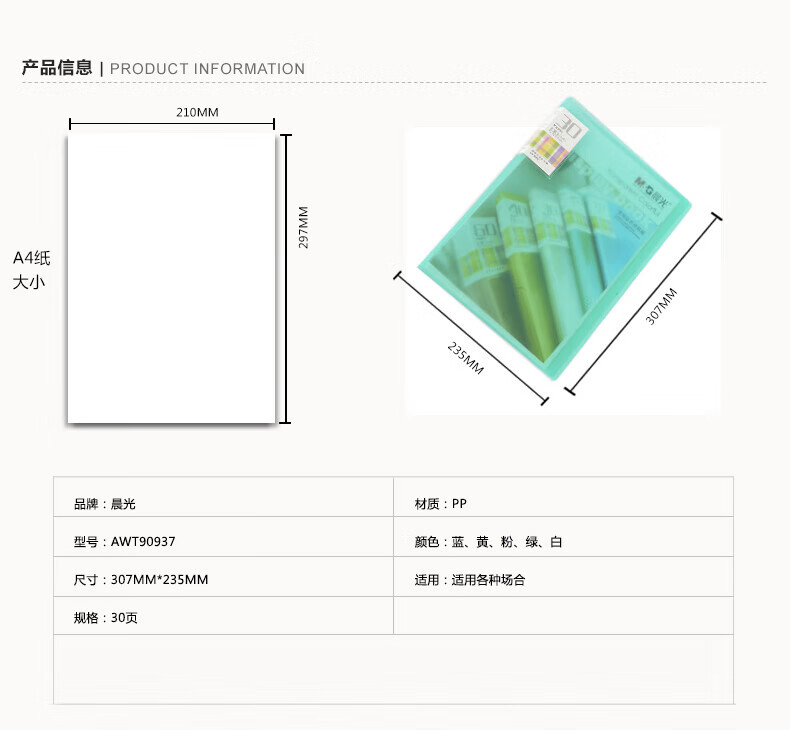 晨光 资料册 AWT90937 颜色随机 30页 A4 1个