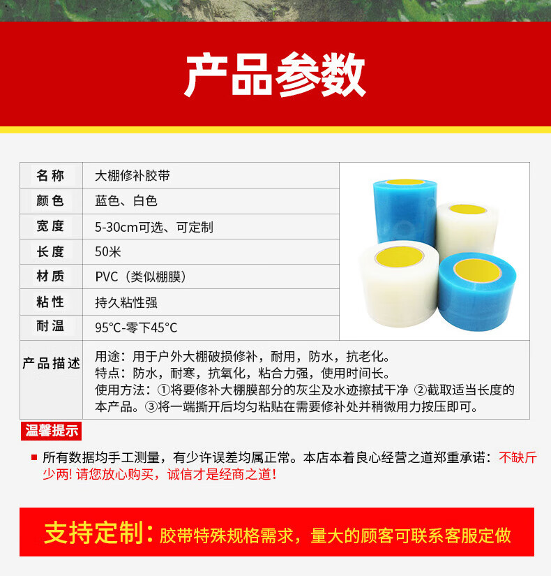 • 商品名称:海斯迪克 大棚膜修补胶带