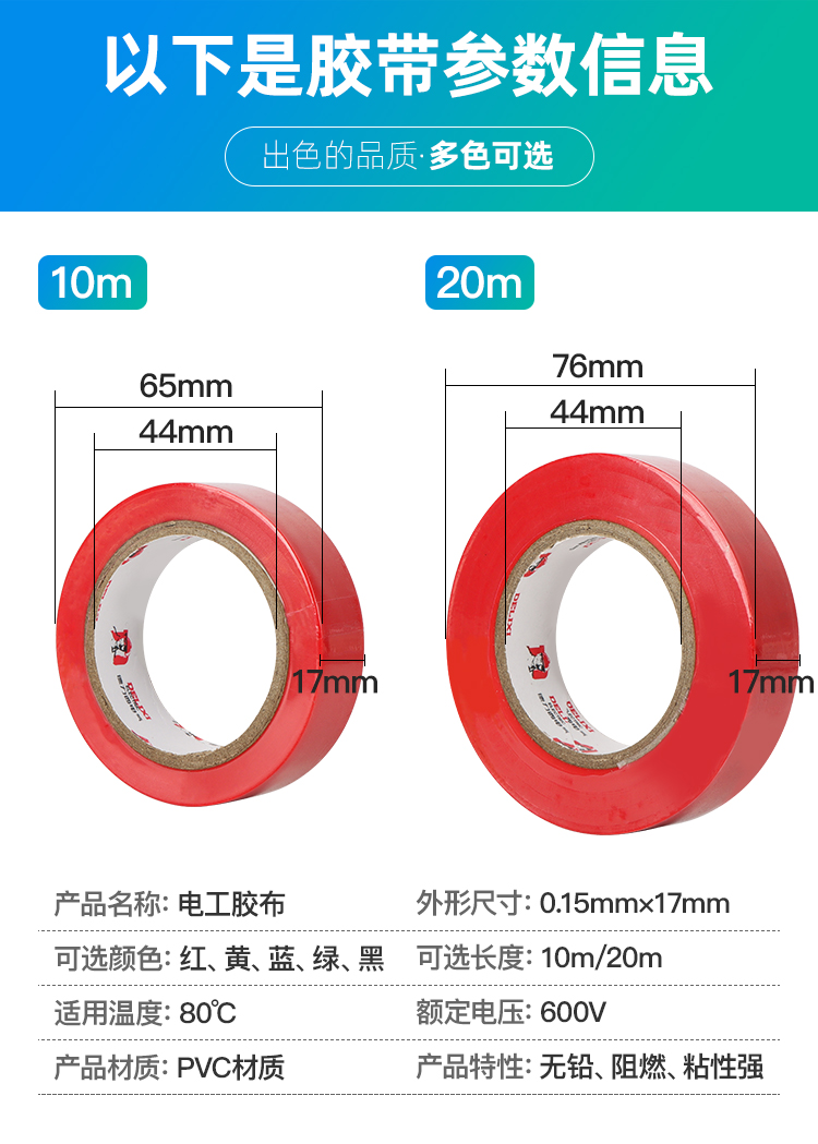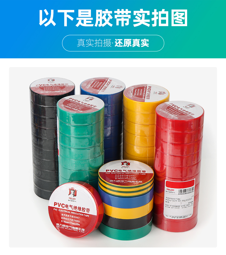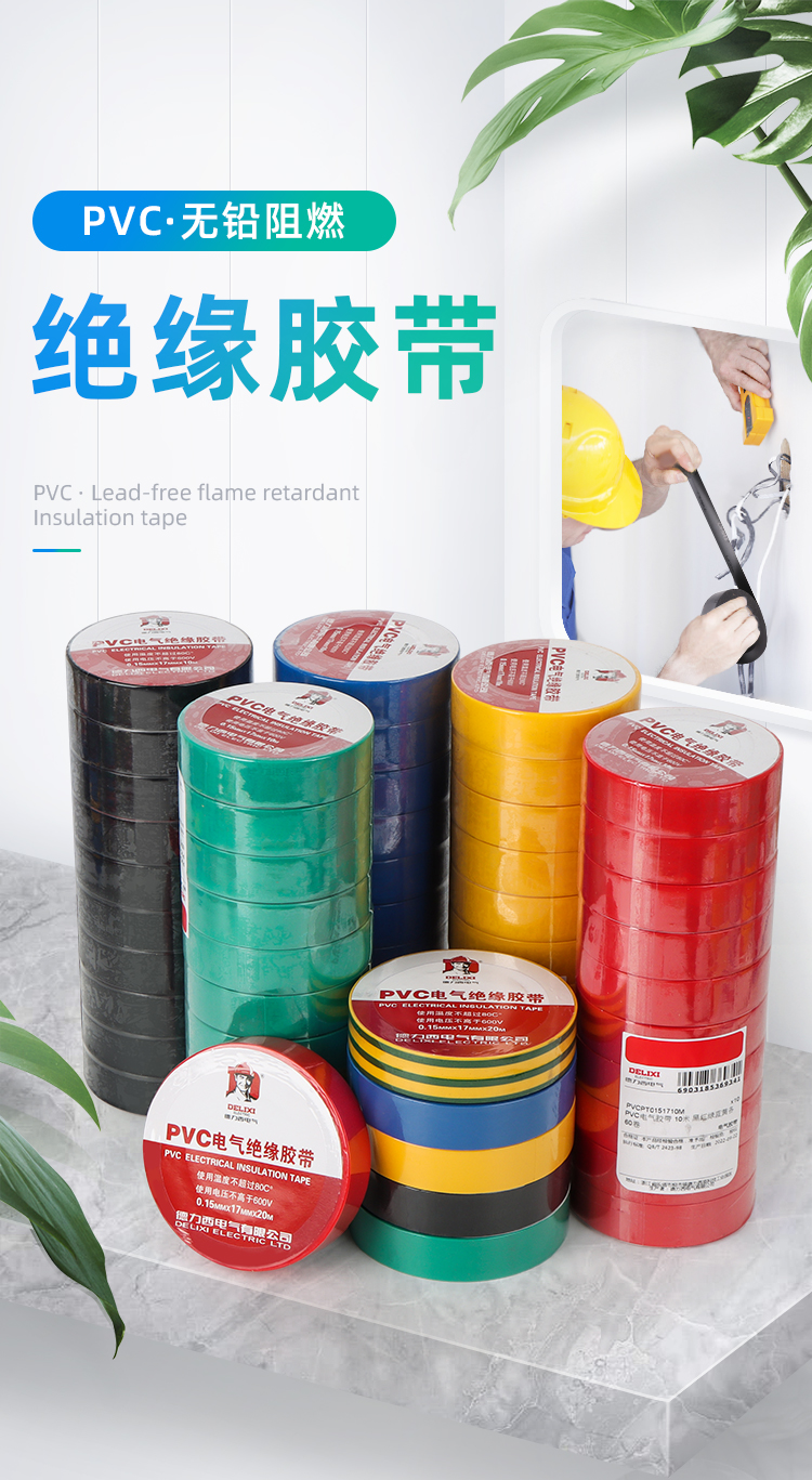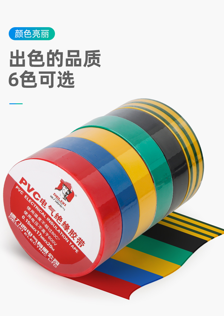 德力西电气 PVC电气胶带 PVCPT0151720G 0.15*17mm 20米 绿色 1卷