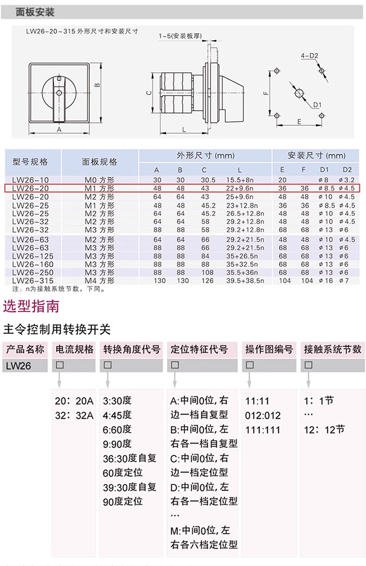 德力西电气 LW26系列万能转换开关 LW26322 32A 接触系统节数 2节 1个