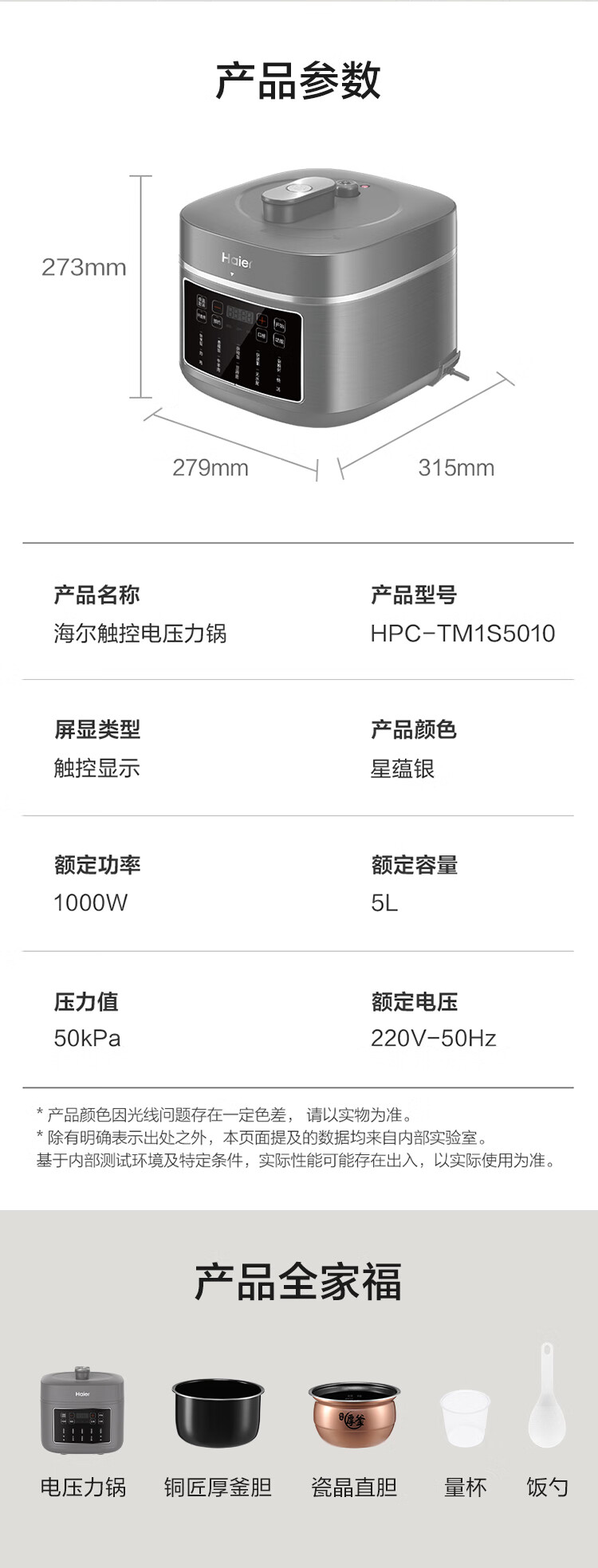 海尔 家用电压力锅 HPC-TM1S5010 5L 1台