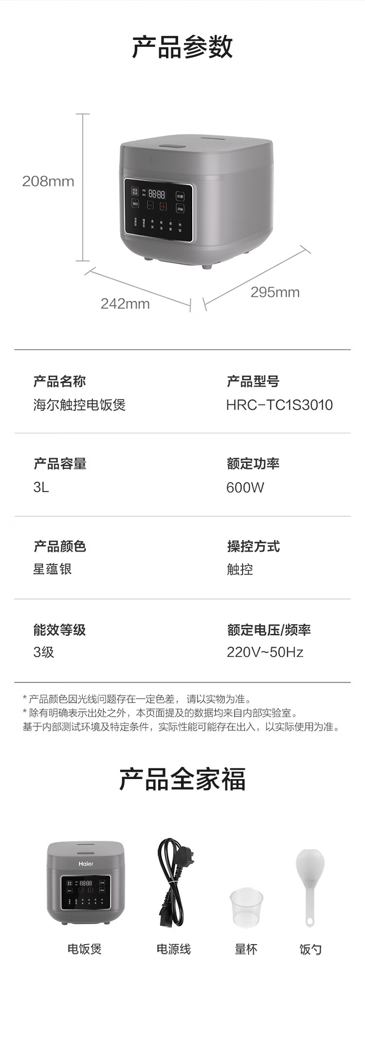 海尔 家用电压力锅 HRC-TC1S3010 3L 1台