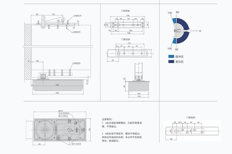 GMT 停门地弹簧 H220BM 100kg 800-900mm 不定位 最大角度116° 1个