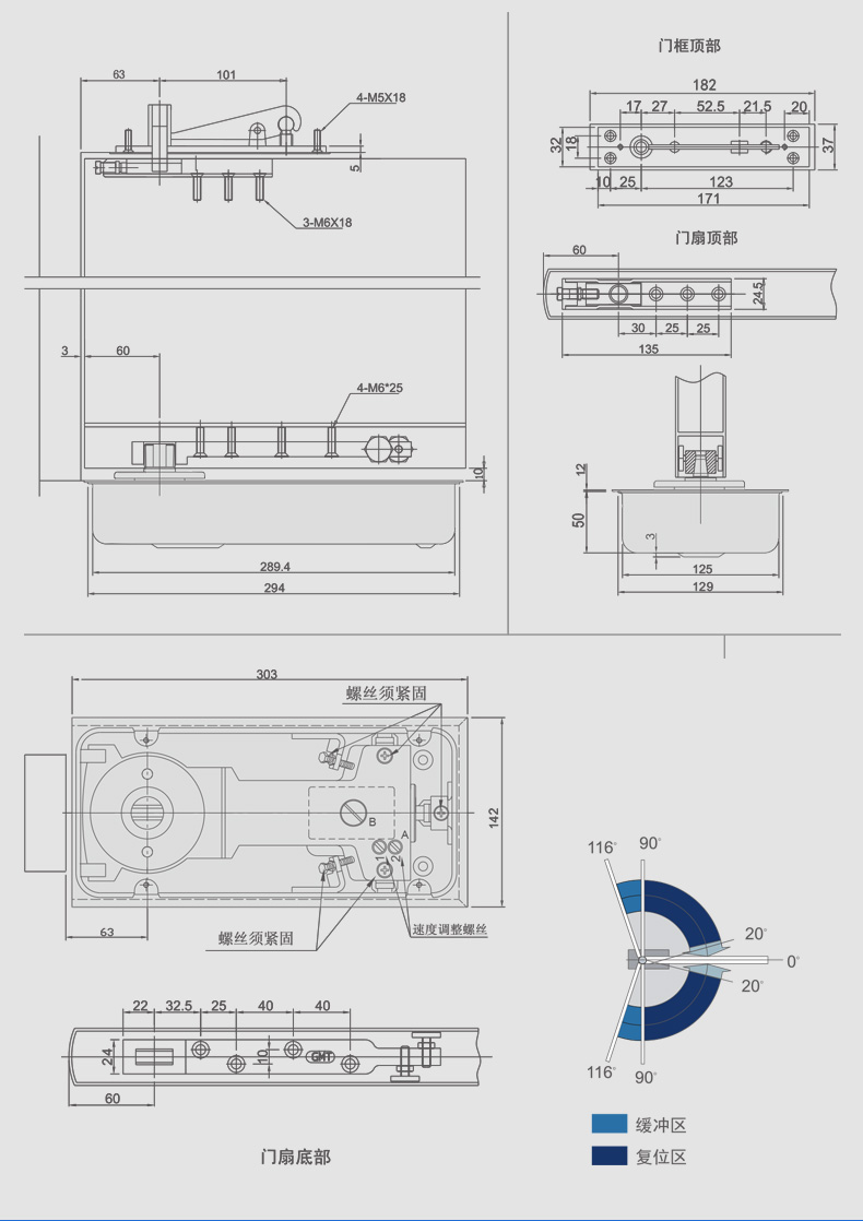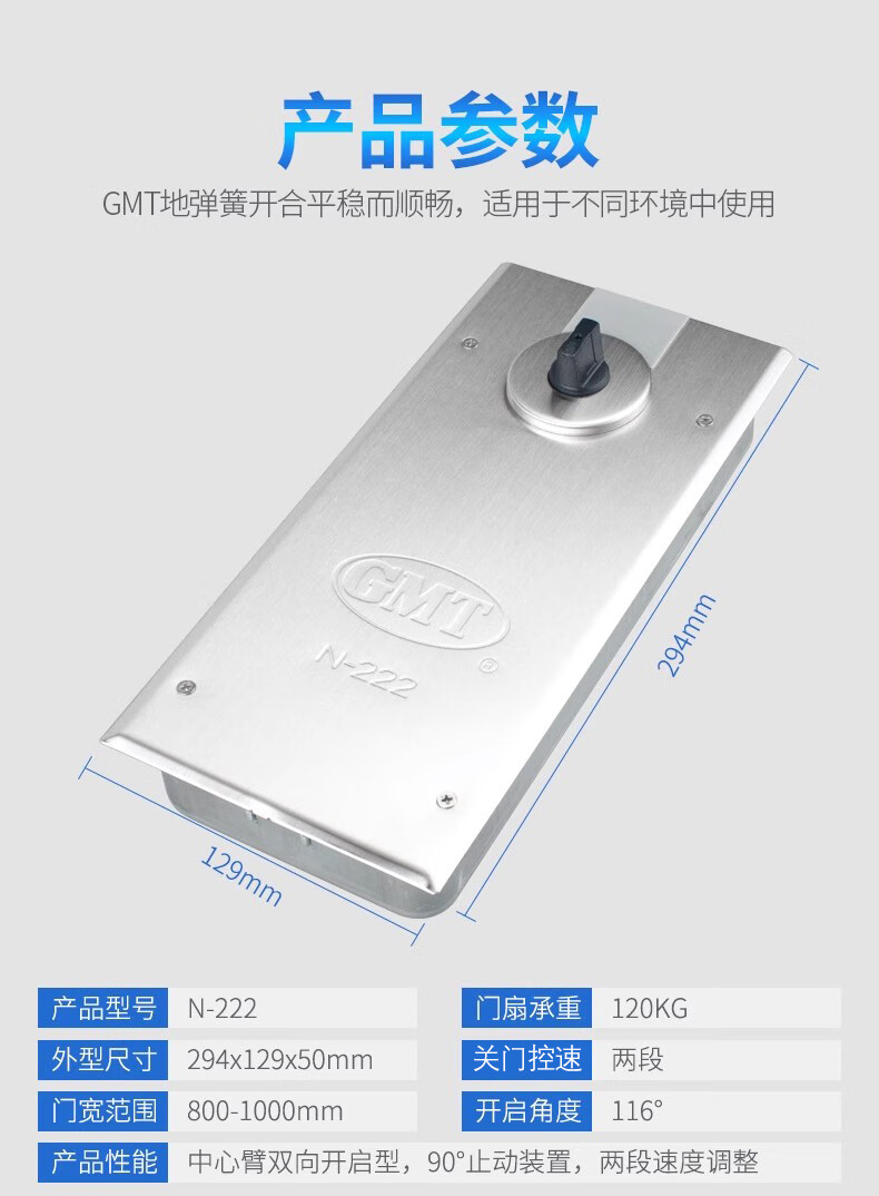 GMT 停门地弹簧 N222M 120kg 800-1000mm 90°定位 最大角度116° 1个