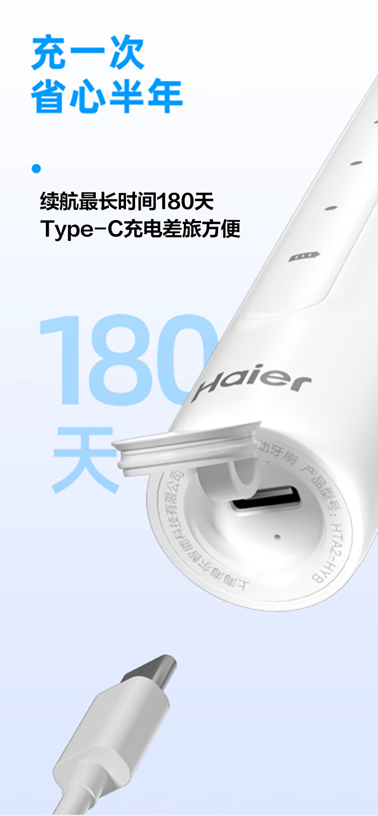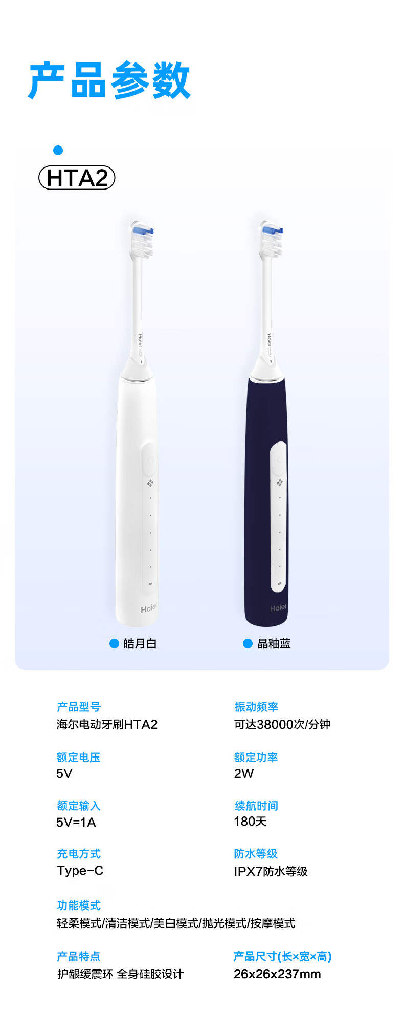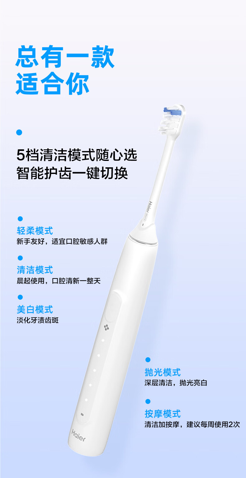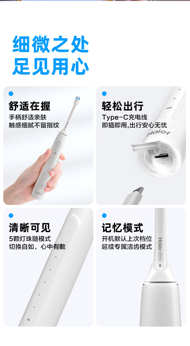 海尔 成人电动牙刷 HTA2 皓月白 1个