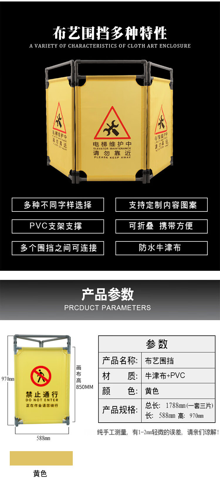 海斯迪克 折叠施工围挡 KA36-1 牛津布+PVC 黄色 人禁止通行 1个