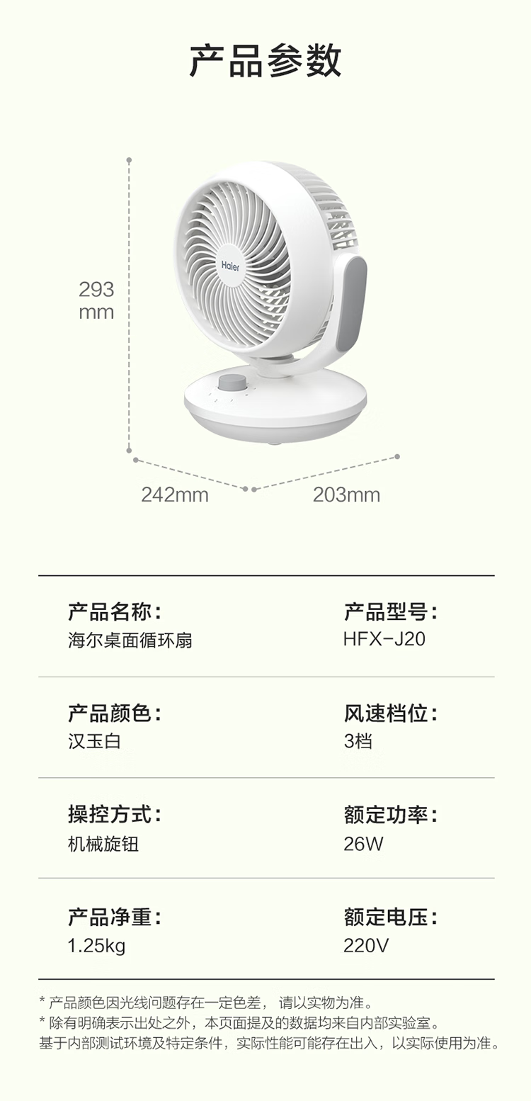 海尔 家用桌面循环扇 HFX-J20 240W 1台