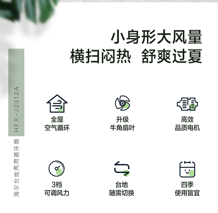 海尔 家用空气循环扇 HFX-J2312A 220W 1台