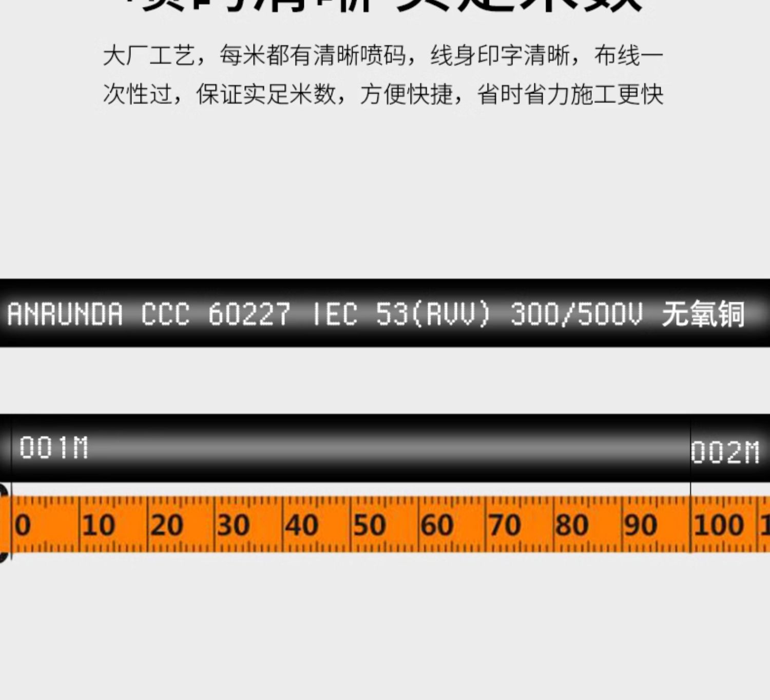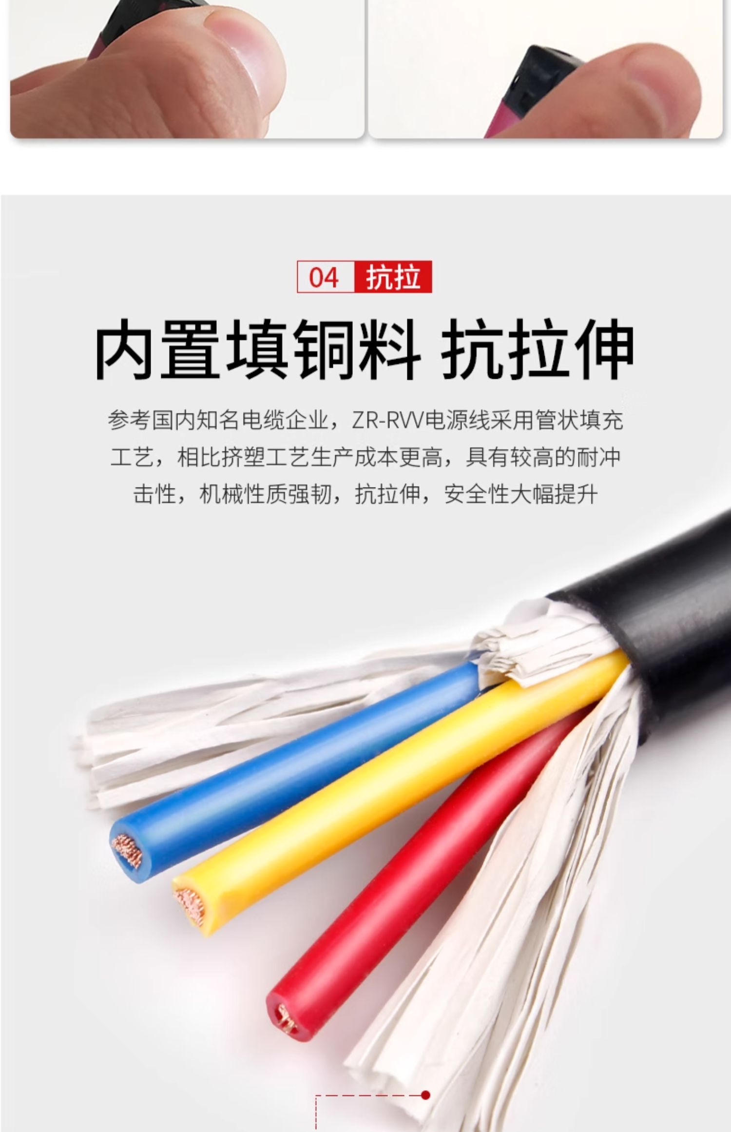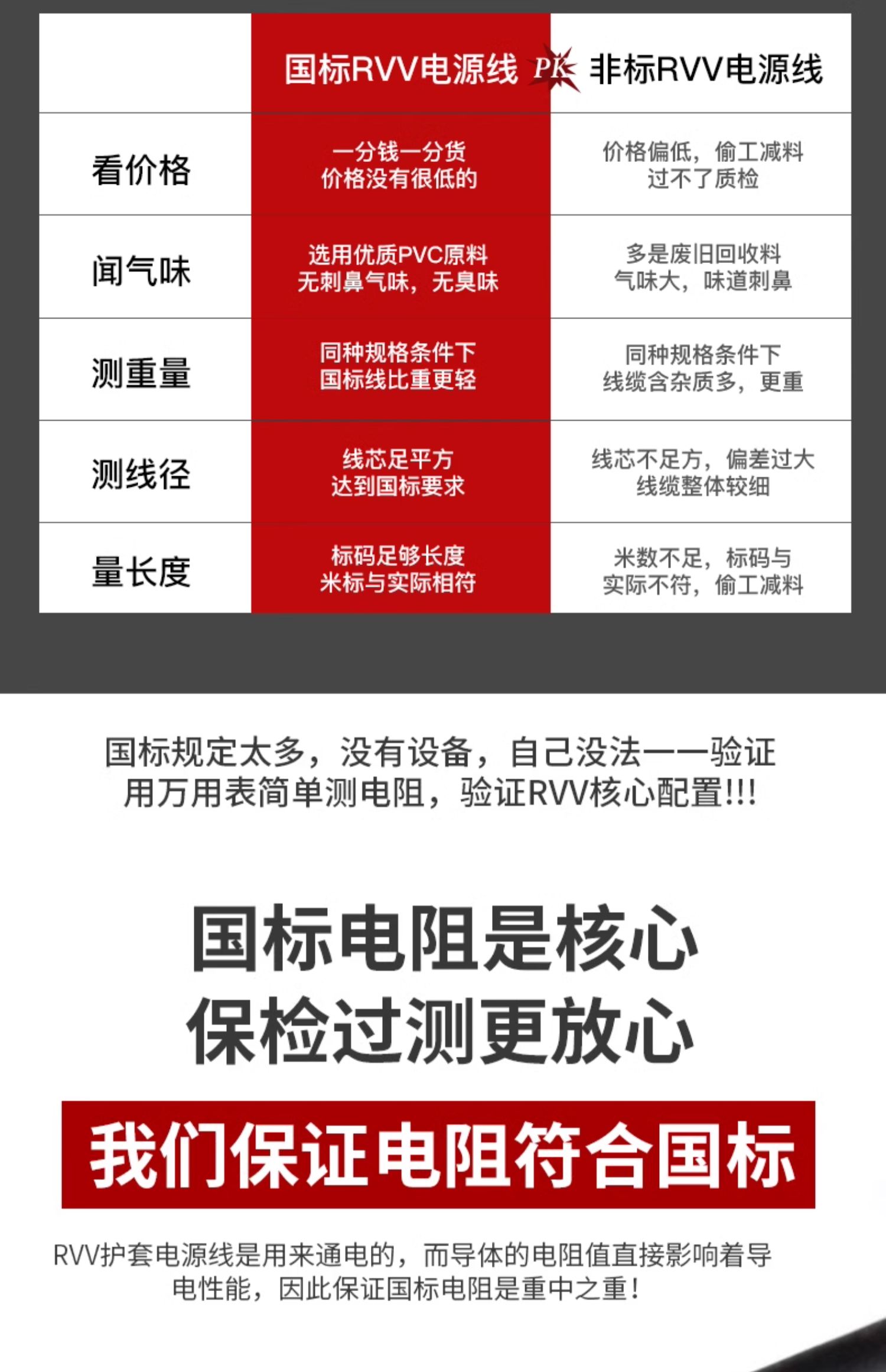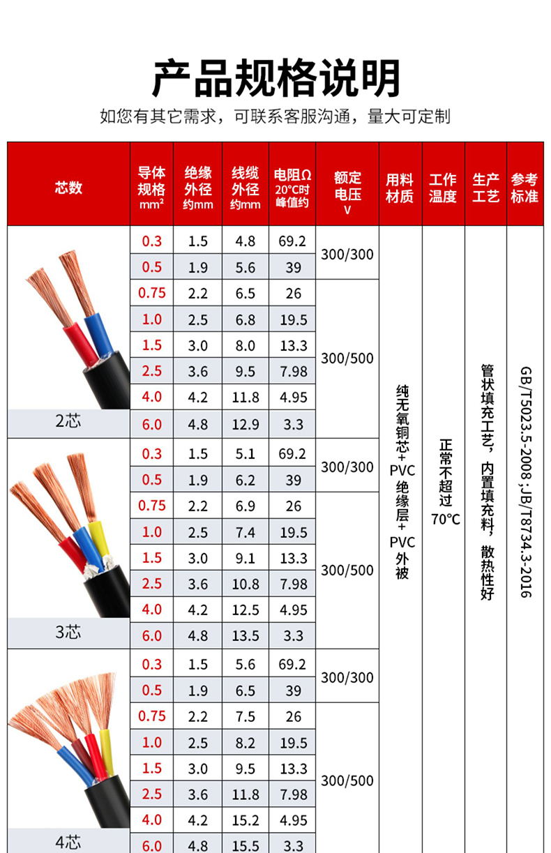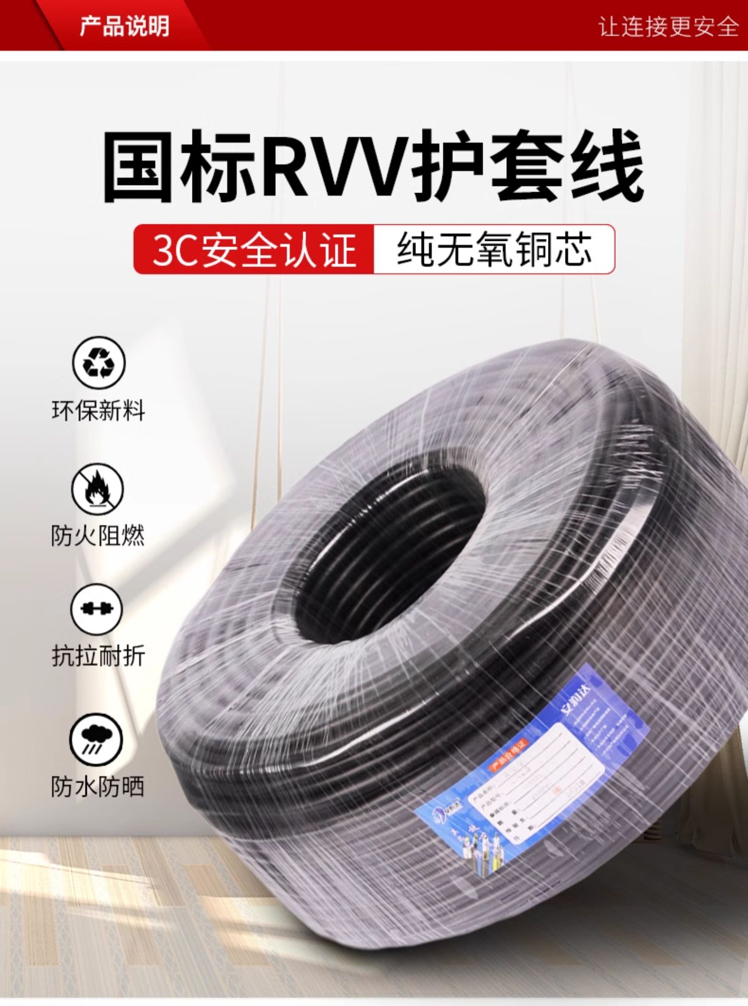 国产通用 铜芯聚氯乙烯绝缘护套软电缆 RVV 3芯 0.3mm² 30米 1卷