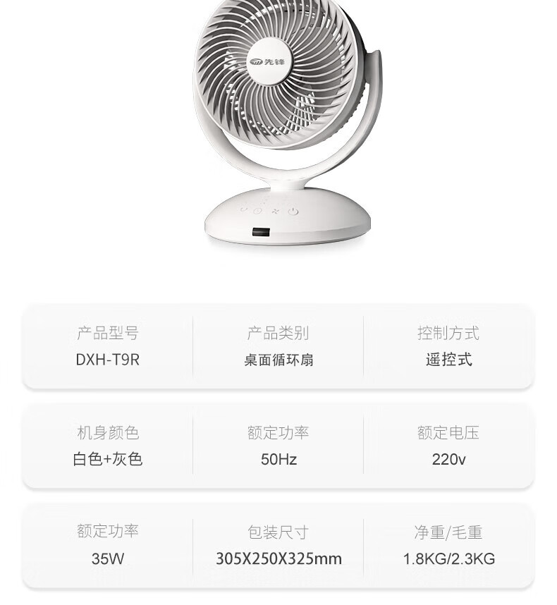 先锋 桌面循环扇 DXH-T9R 35W 1台