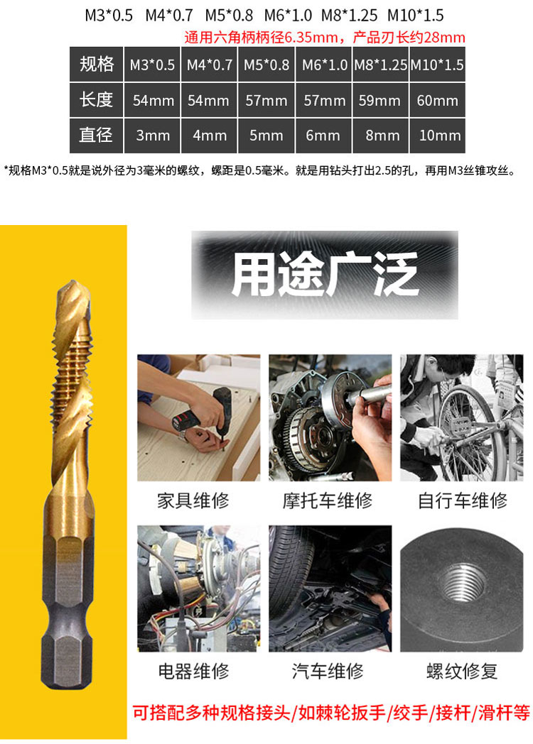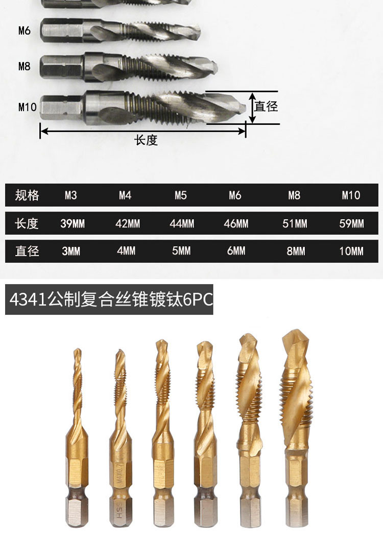 • 商品名称:海斯迪克 六角柄复合丝锥