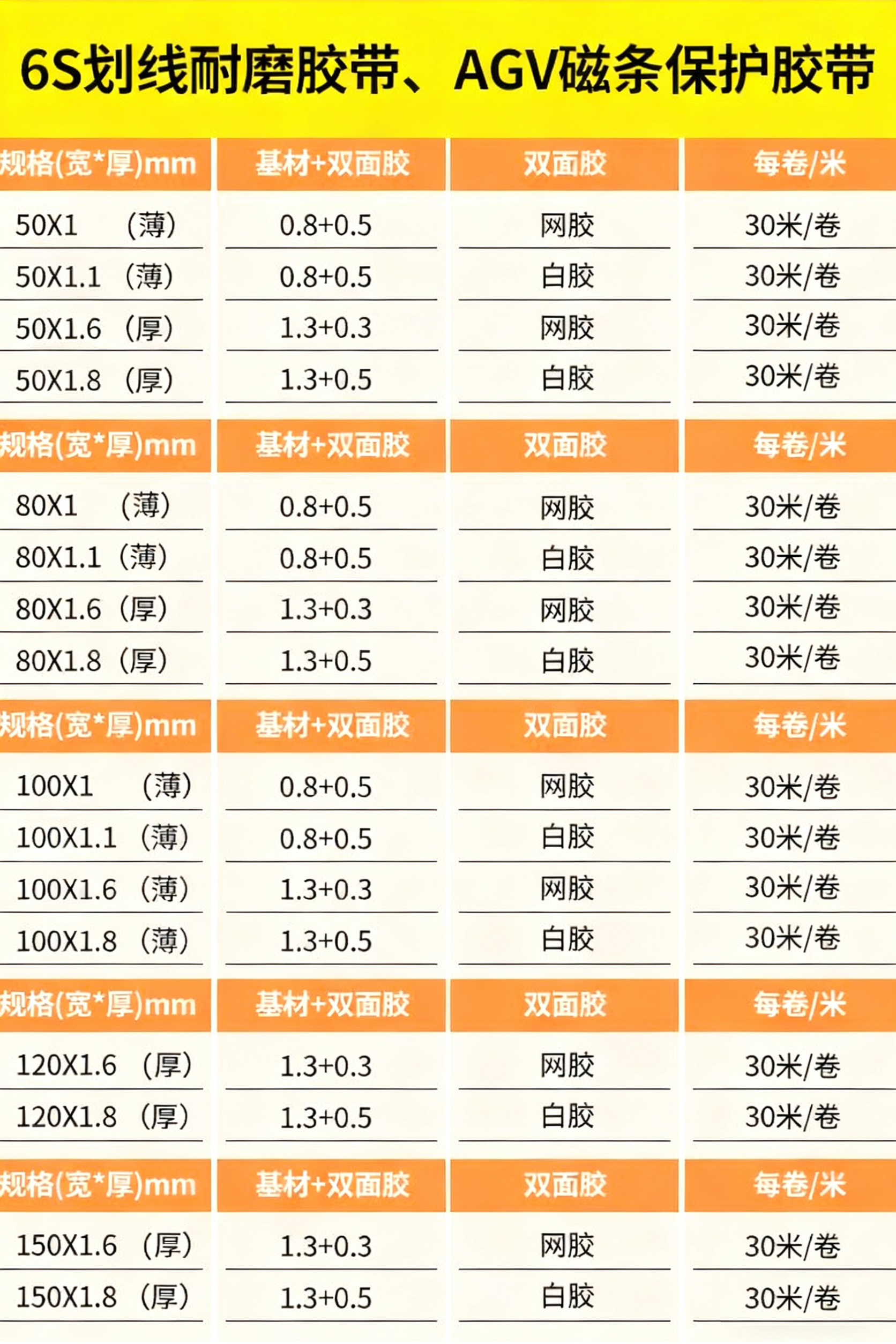 国产通用 6S耐磨划线胶带 50mm宽-黄色(0.9MM厚) 30m 1卷