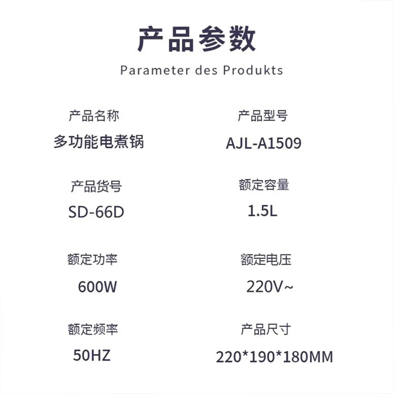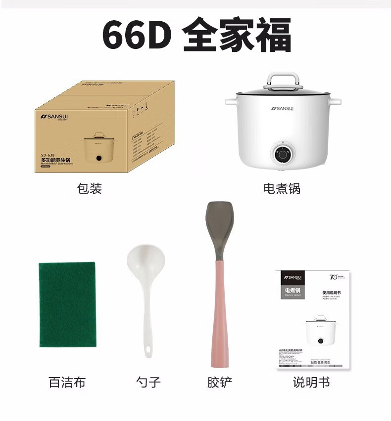 山水 多功能电煮锅 SD-66D 1.5L 600W 1个