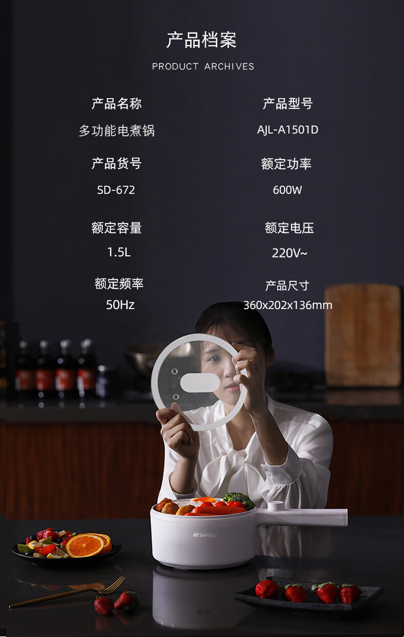 山水 电煮锅 SD-672 1.5L 600W 1个