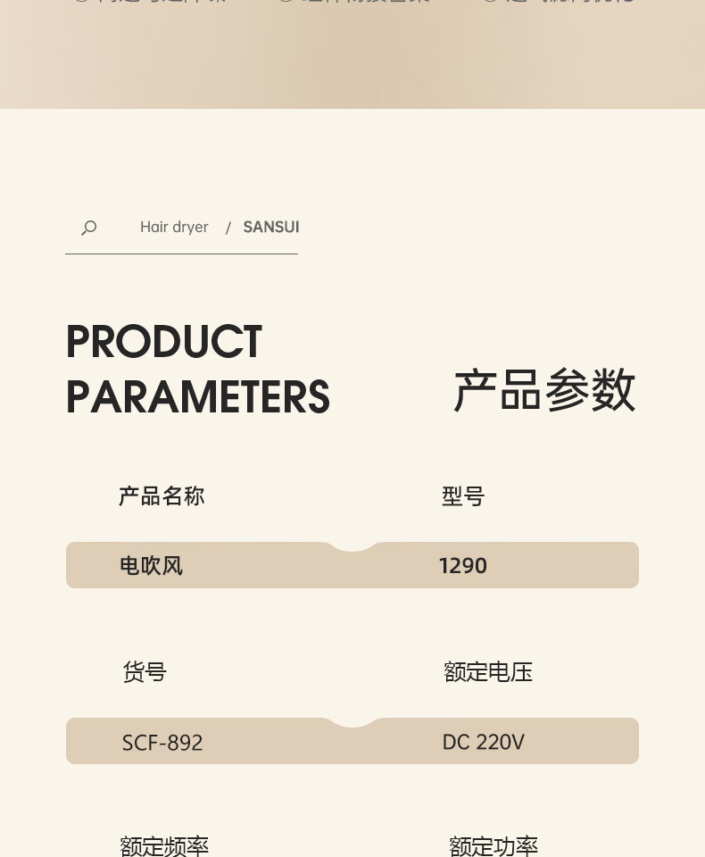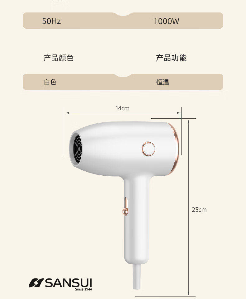 山水 子弹头电吹风 SCF-892 1000W 白色 1个