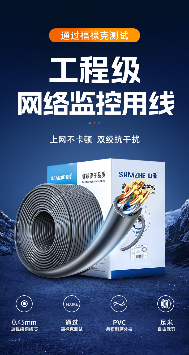 山泽 超五类非屏蔽网线监控线 WL305H 灰色无氧铜 305米 1箱