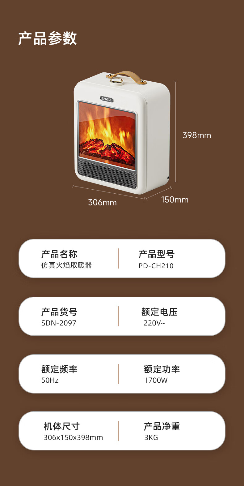 山水 仿真焰火取暖器 SDN-2097 机械式 1700W 1台