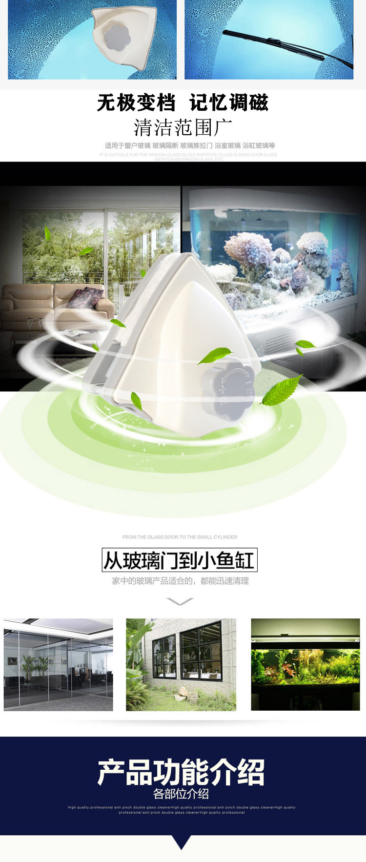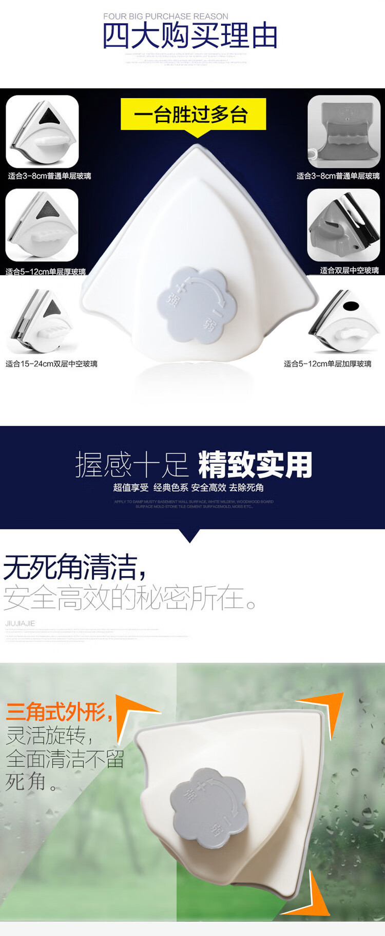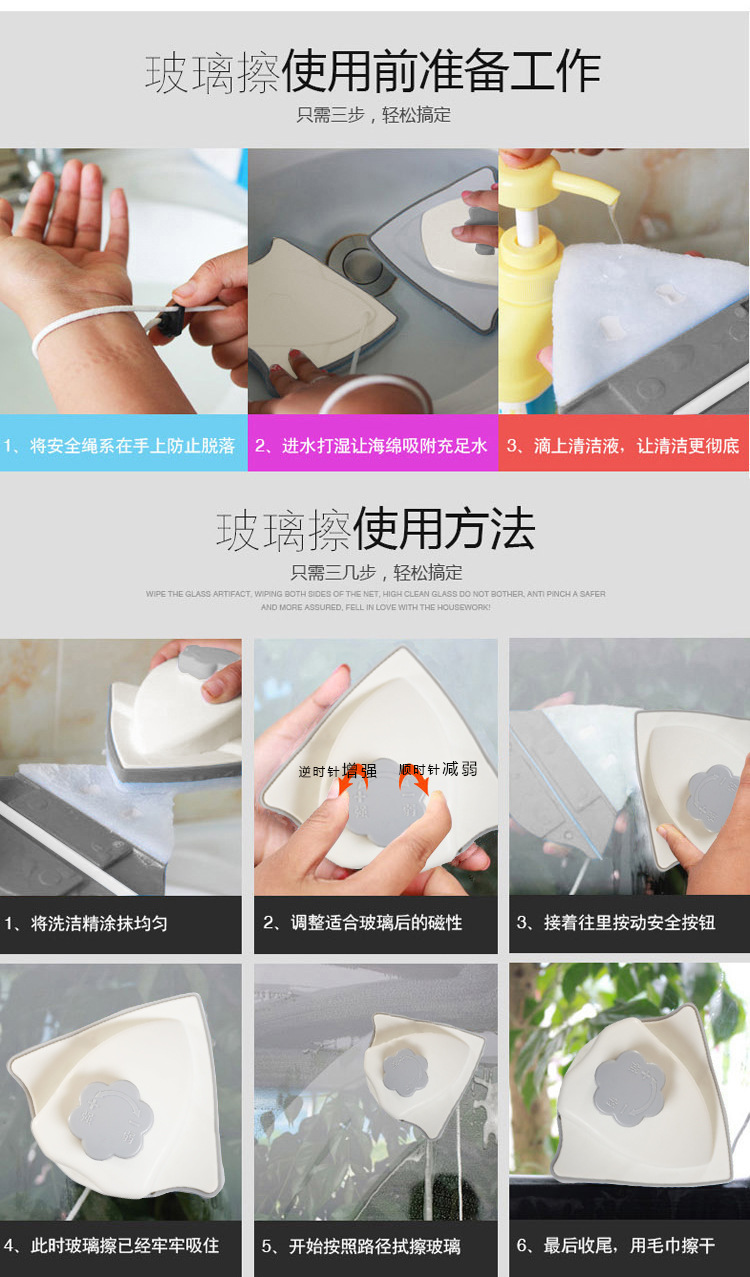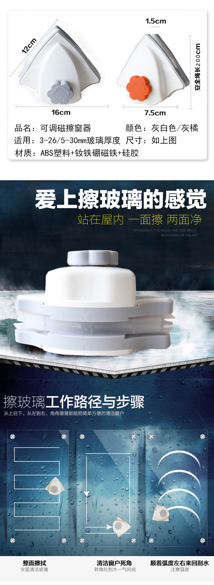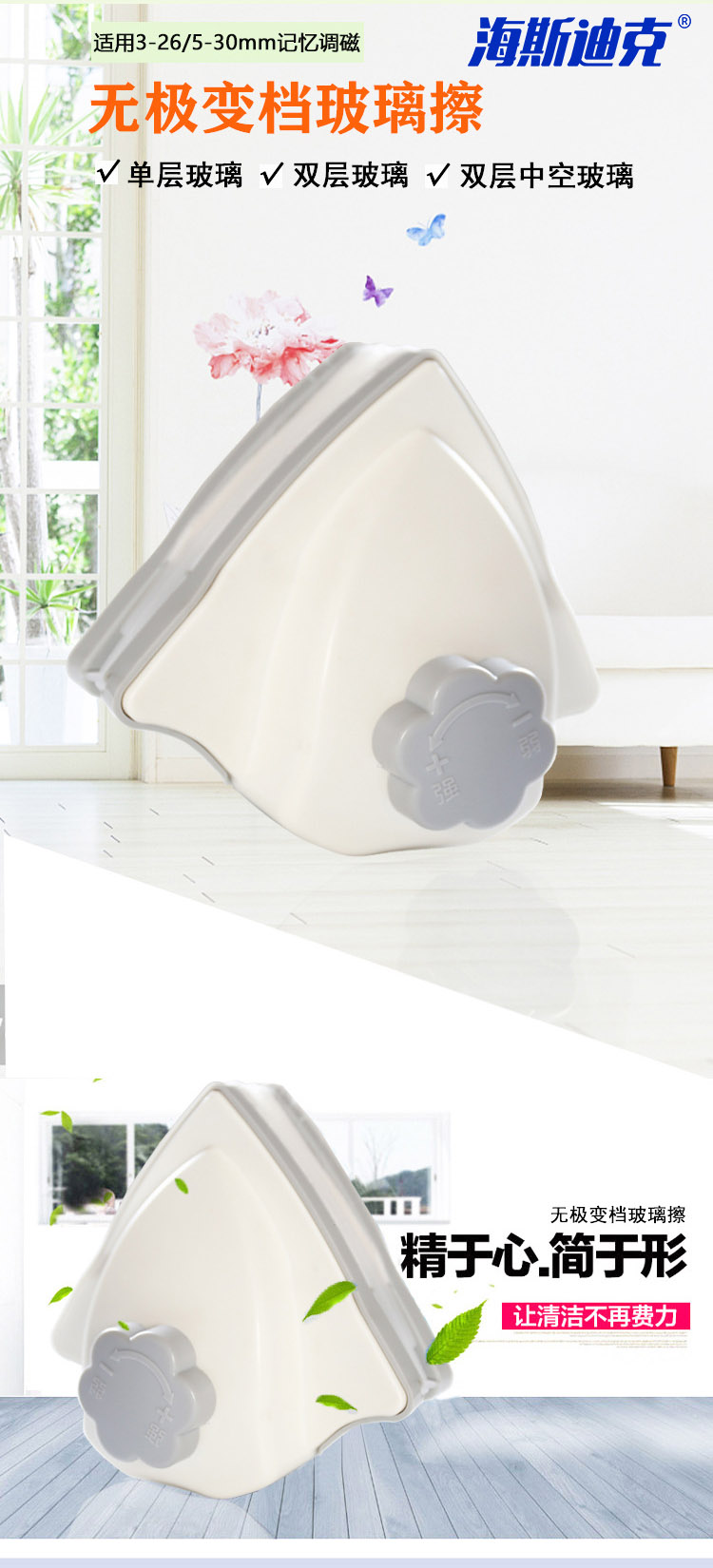 海斯迪克 升级款玻璃擦 KQ143-1 可调磁3-26mm 灰橘色 1个