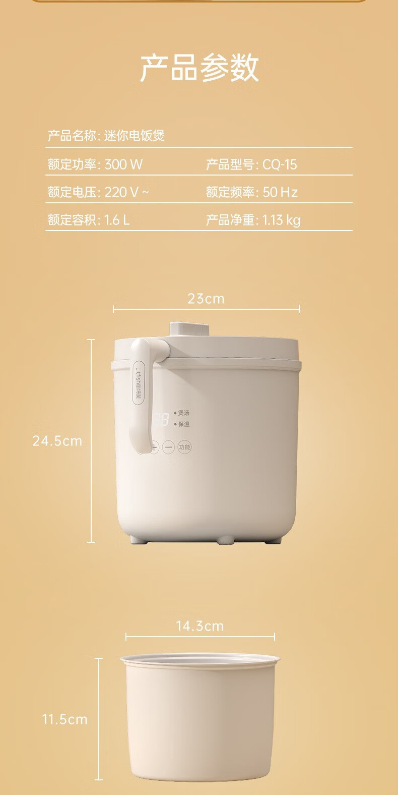 丽特斐 日式迷你电饭煲 CQ-15 1.6L 300W 1个